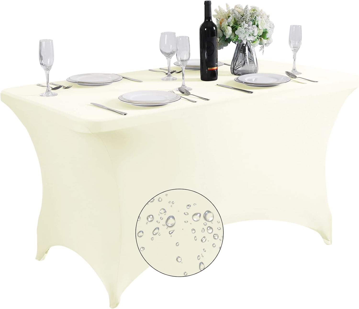 SuperO Waterproof Spandex Table Cover for 4FT Table Universal Fitted Stretch Tablecloth for Party, Banquet, Wedding and Events-Ivory