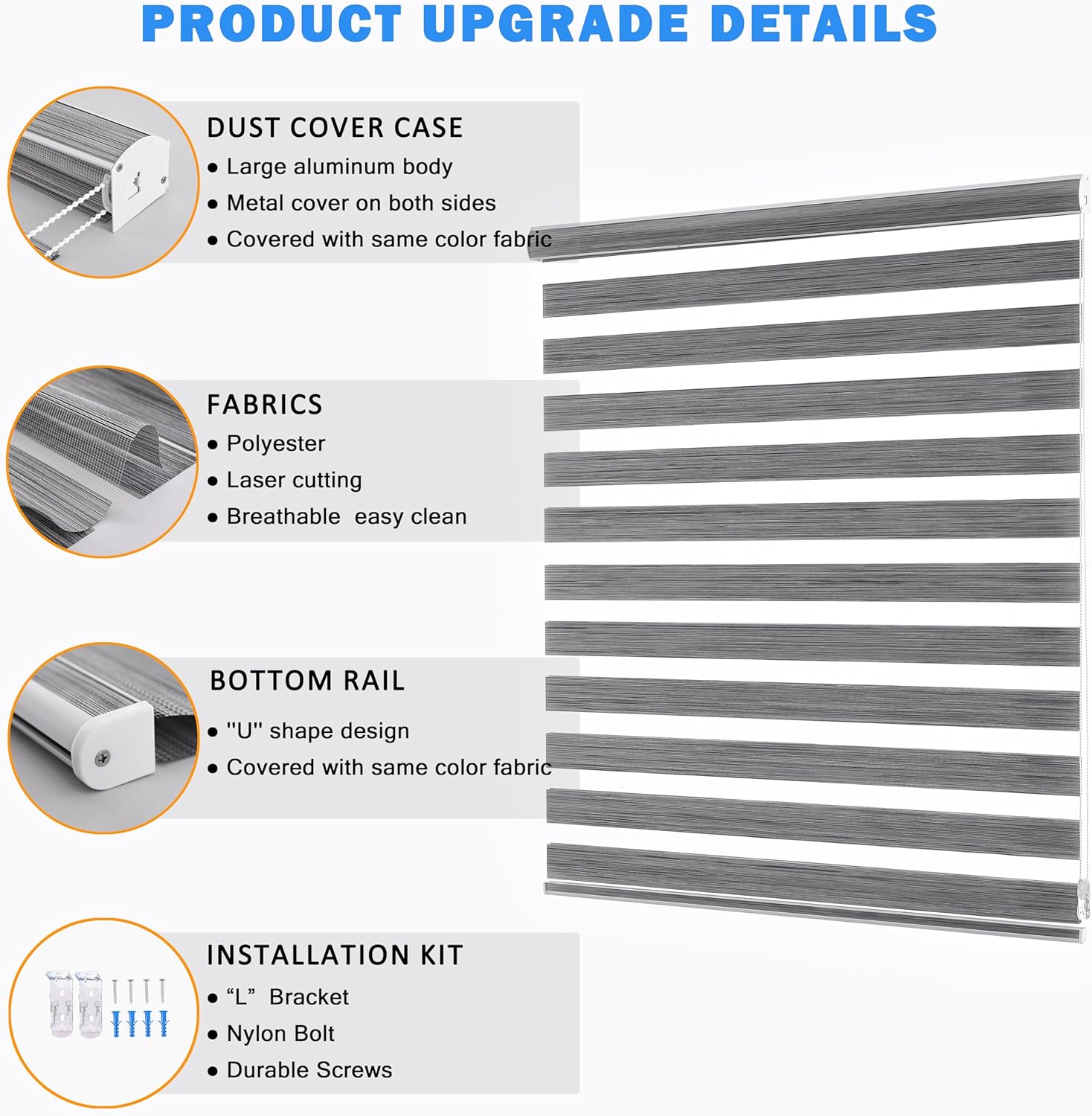 - Zebra Blinds for Windows with a premium polyester fabric - High-End Quality - Easy to install - Easy to clean,Grey Color 26 inch Width.
