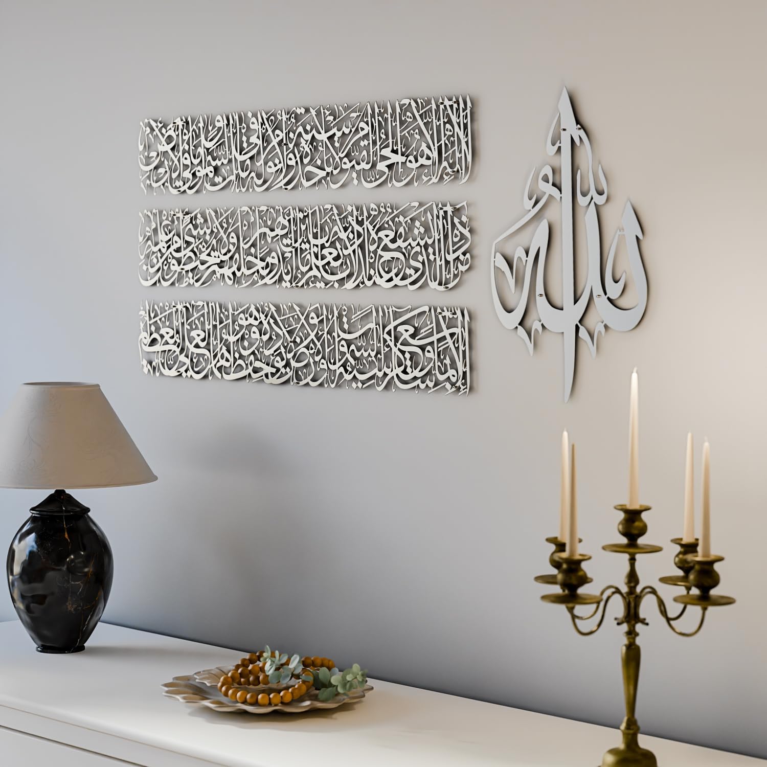 Modern Islamic Wall Art, Ayatul Kursi Metal Artwork, Perfect for Ramadan Decorations, Muslim Housewarming Gifts, Arabic Calligraphy Throne Verse Wall Decor, Ideal Eid Decor (Large, Matte Silver)