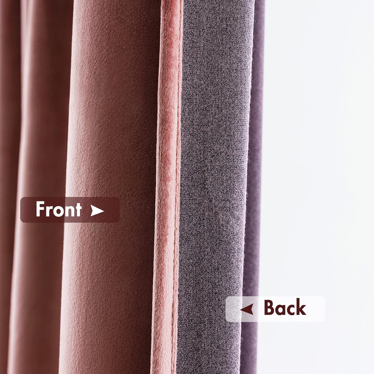 MIULEE Dusty Rose Pink Velvet Curtains Thermal Insulated Blackout Curtain Drapes for Bedroom Living Room Darkening 84 Inches Long Curtains Panels Rod Pocket Set of 2