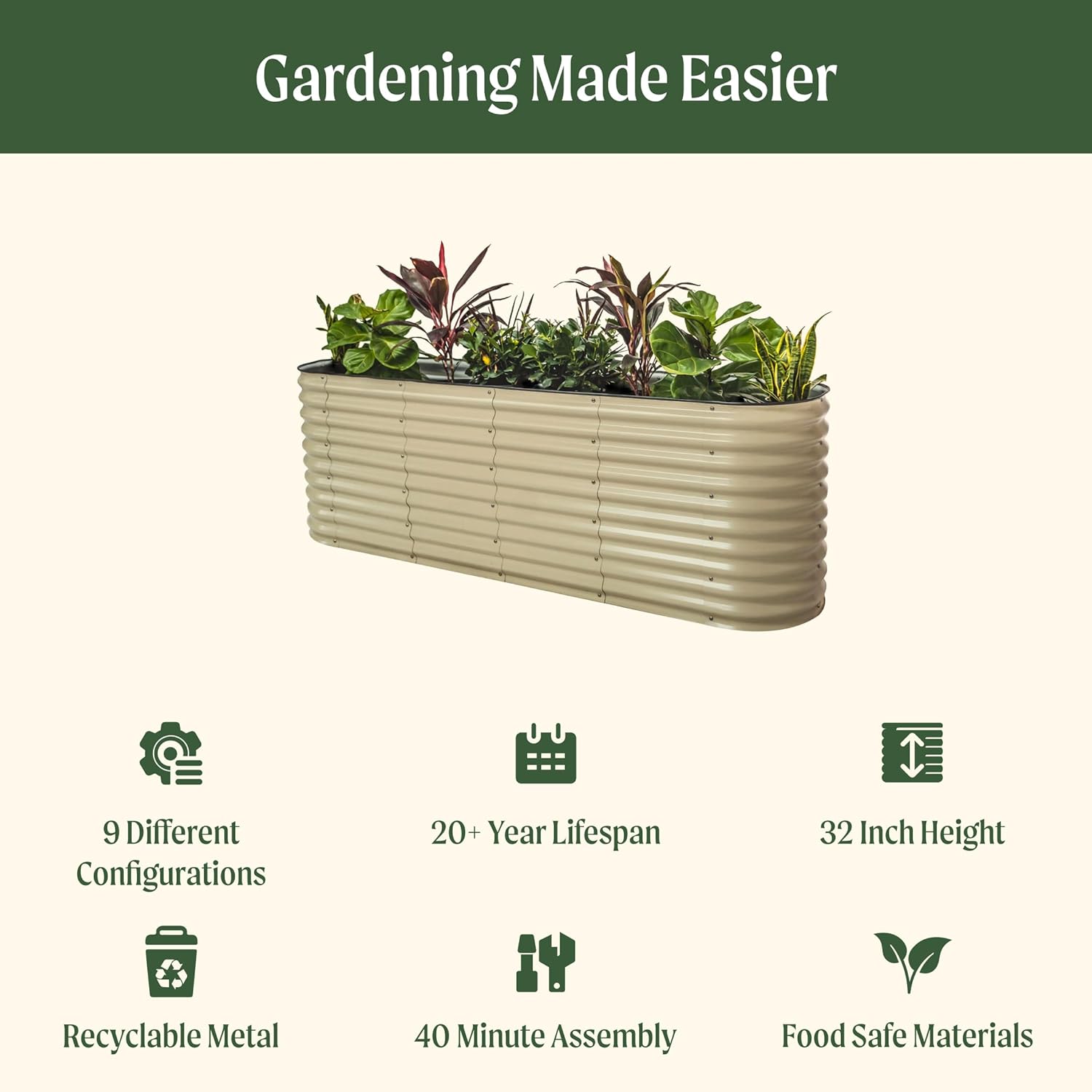 Vego Garden 32" Extra Tall Oval Metal Raised Garden Bed Kit - 9 in 1 Modular Planter Box for Vegetables, Flowers, Fruits - Pearl White