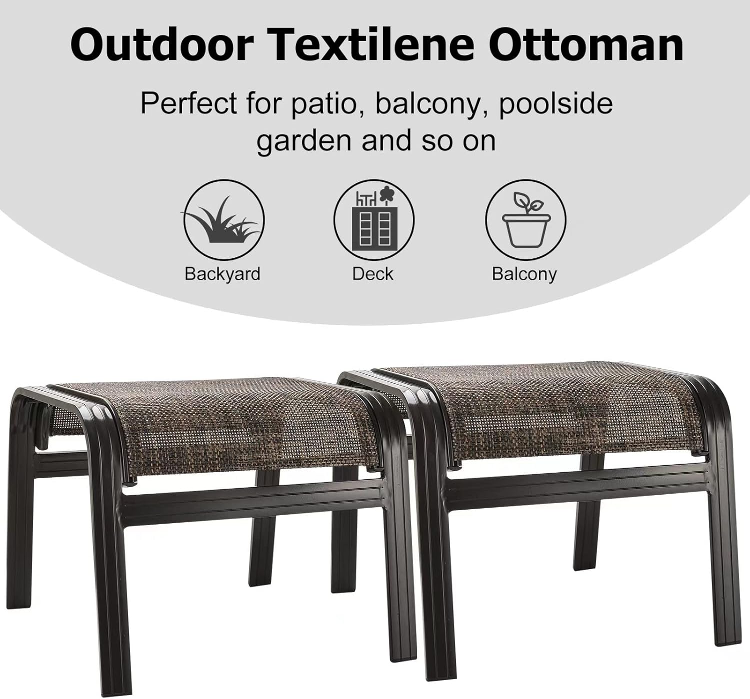 Patio Footstools Outdoor Foot Rest Aluminum Ottomans Samll Seat Wicker Furniture Patio Ottoman 2 Pieces Brown