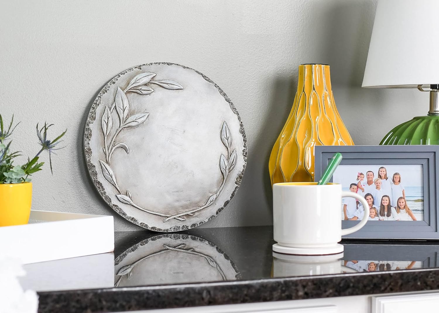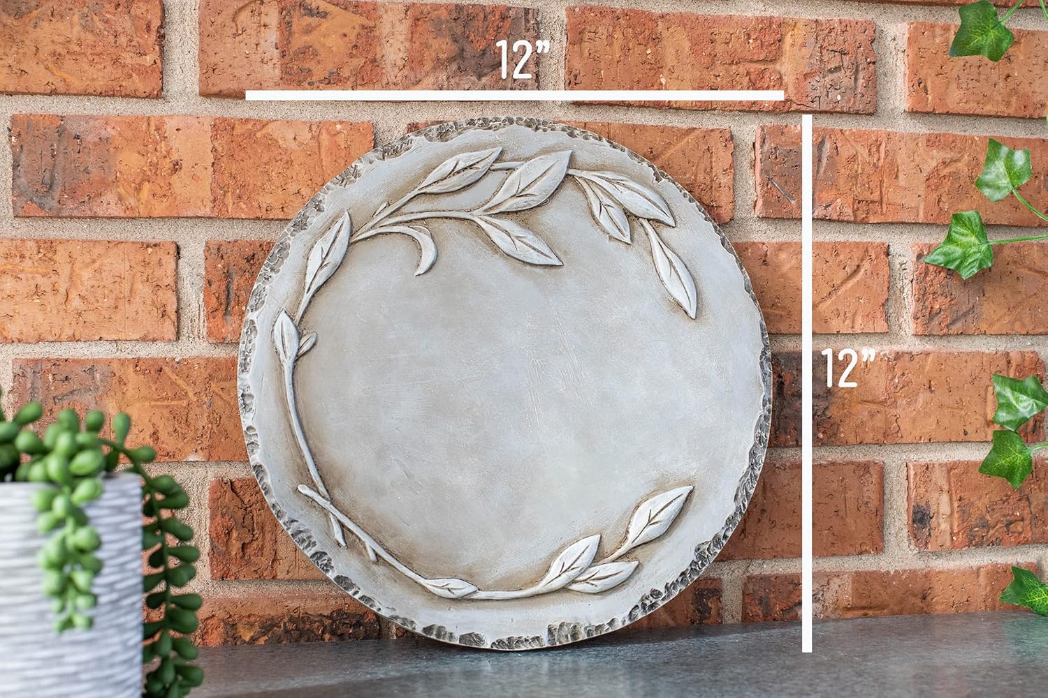 NAT & Jules Floral Laurel Wreath Leaves Pattern Dimensional Indoor Outdoor 12 inch Round Cast Resin Decorative Garden Stepping Stone, Patio, Walkway Sculpture Yard Art, Grey