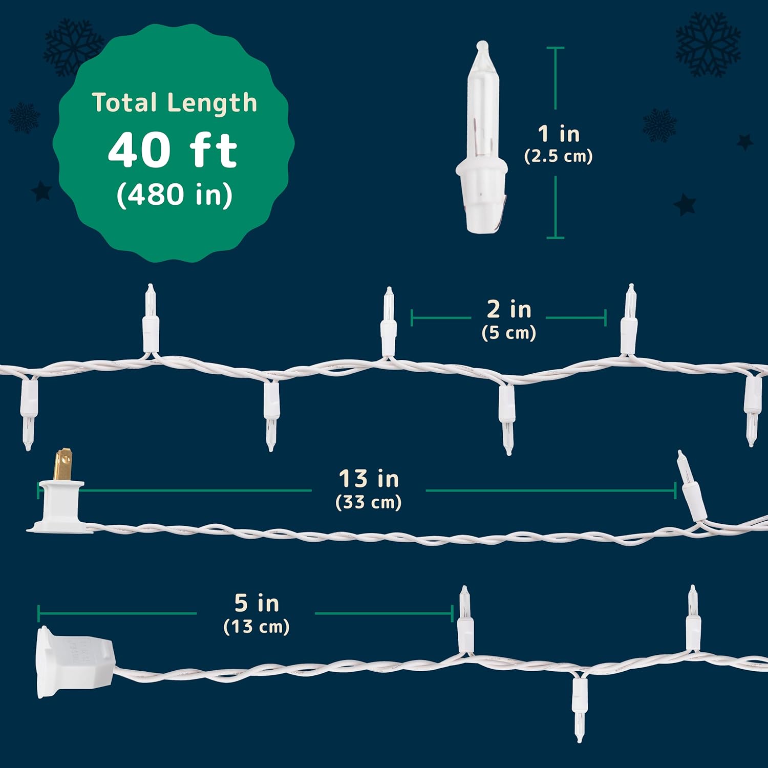 PREXTEX 200 Count Clear Christmas Lights - 40 ft Warm White Xmas Lights String Bulbs with White Wire for Indoor and Outdoor Holiday Decor, Trees and More