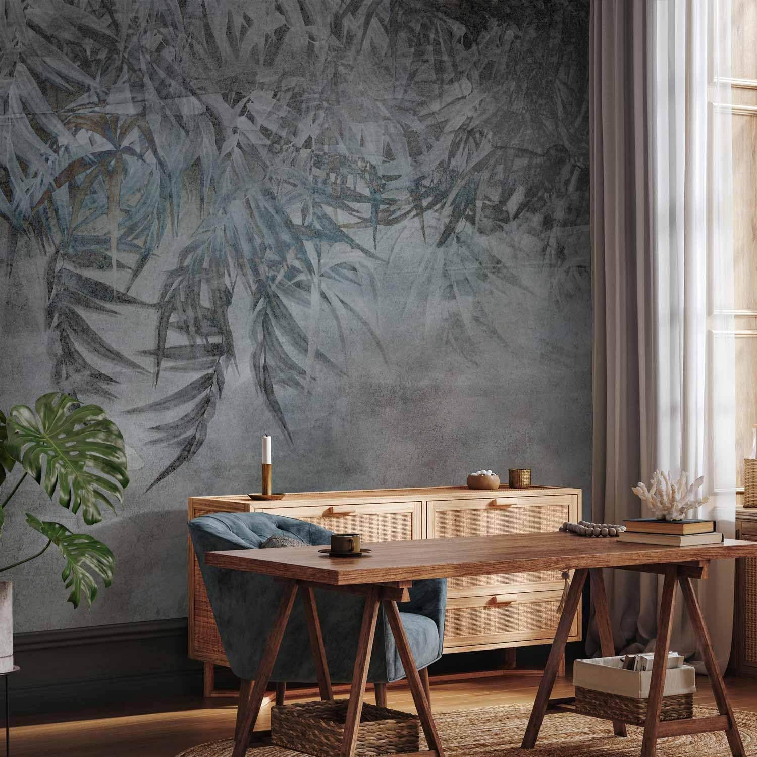 artgeist Wall Mural Leaves 77x55 in - XXL Peel and Stick Self-Adhesive Wallpaper Removable Large Sticker Foil Wall Decor Print Picture Image Design Palm Leaves Concrete Nature Grey b-C-10103-a-a