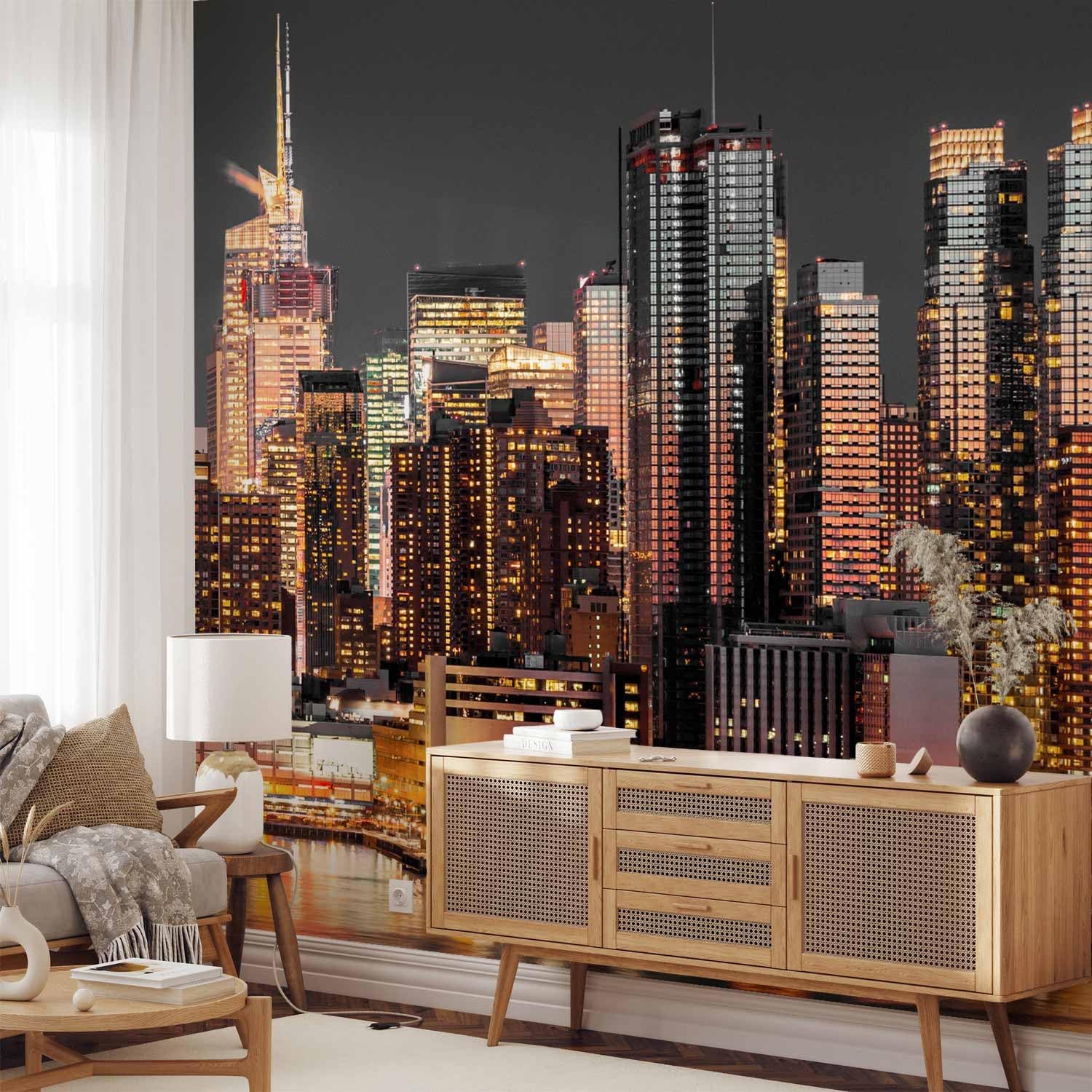 artgeist Wall Mural New York City 216x98 in - XXL Non-Woven Corner Wallpaper Fleece Angle Wall Decor Photo Print Picture Image Design Modern Night Skyline Panorama d-B-0060-a-e