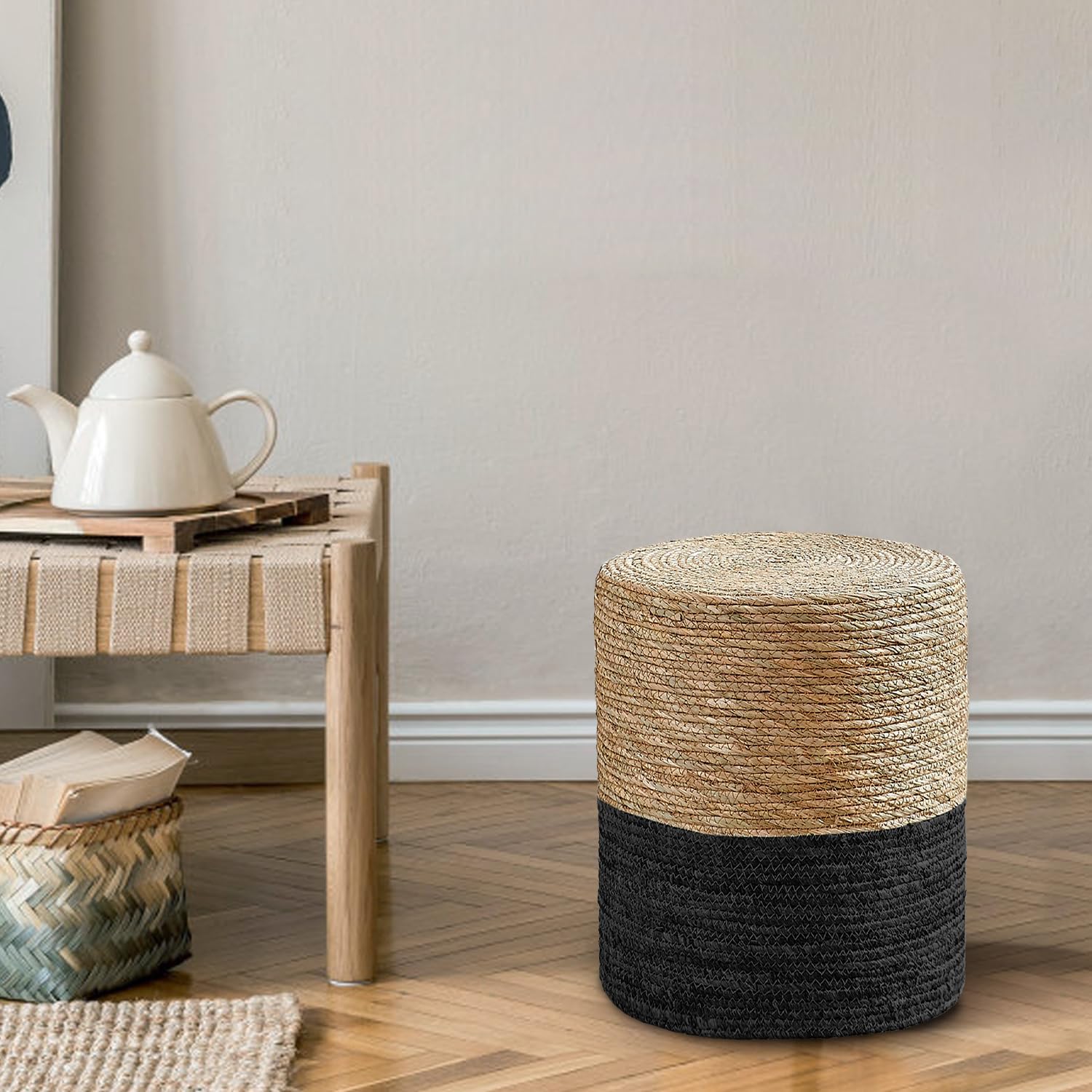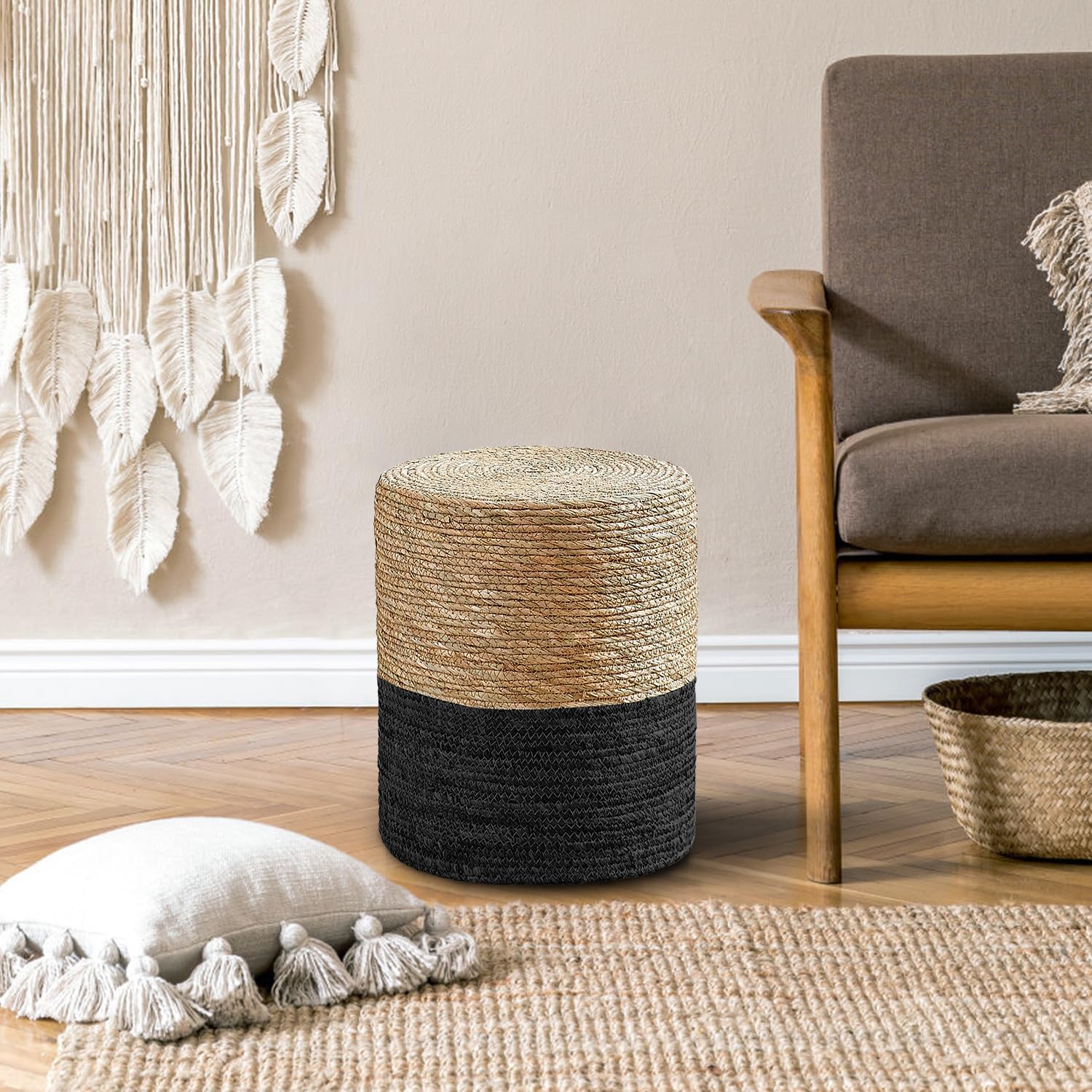 - 100% Handmade Cover: Pouf Ottoman is made of sustainable, and durable natural seaweed & corn husk braid.High-end sewing technology makes natural materials more tight and not easy to open