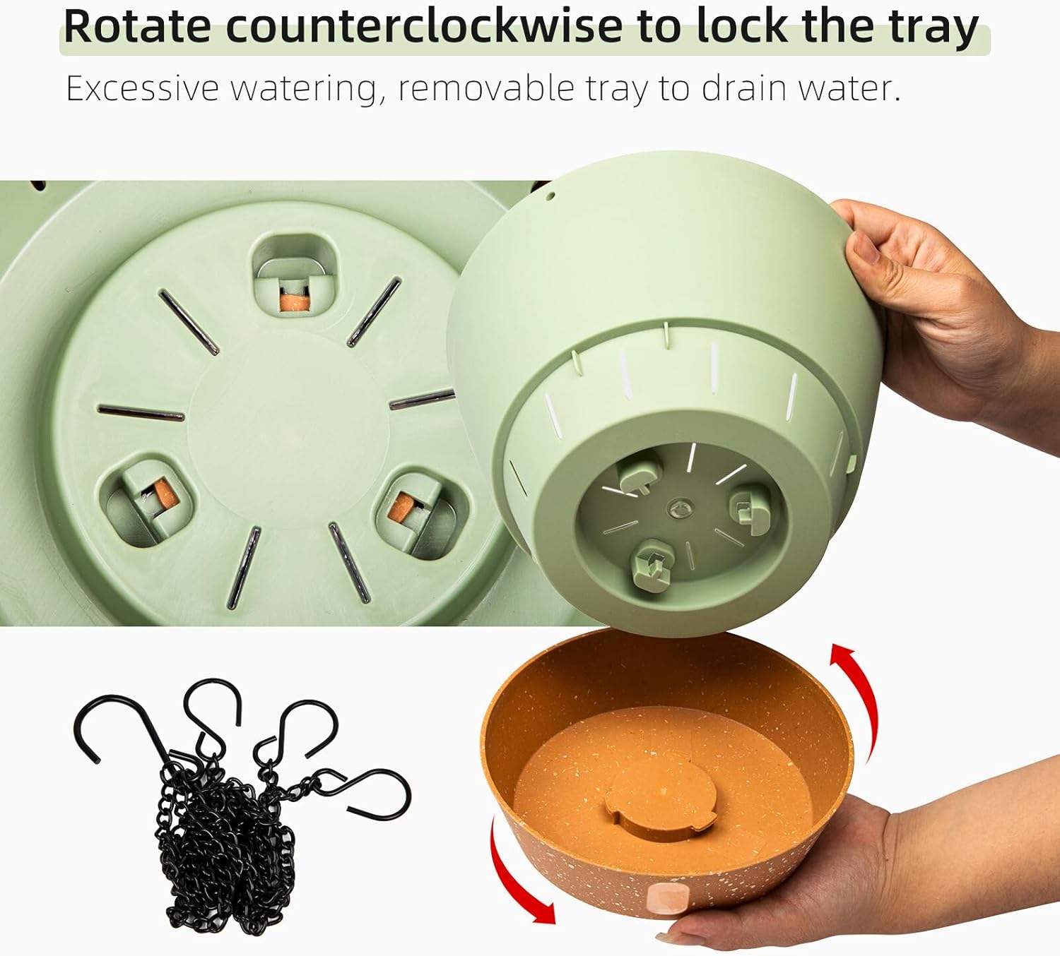 - SNAP-IN TRAY & WATER STORAGE: Snap-in tray is convenient to clean hanging plant pot. Hanging pots can overflow excess water from the edge, and the tray will store 7-14 days water for plants
