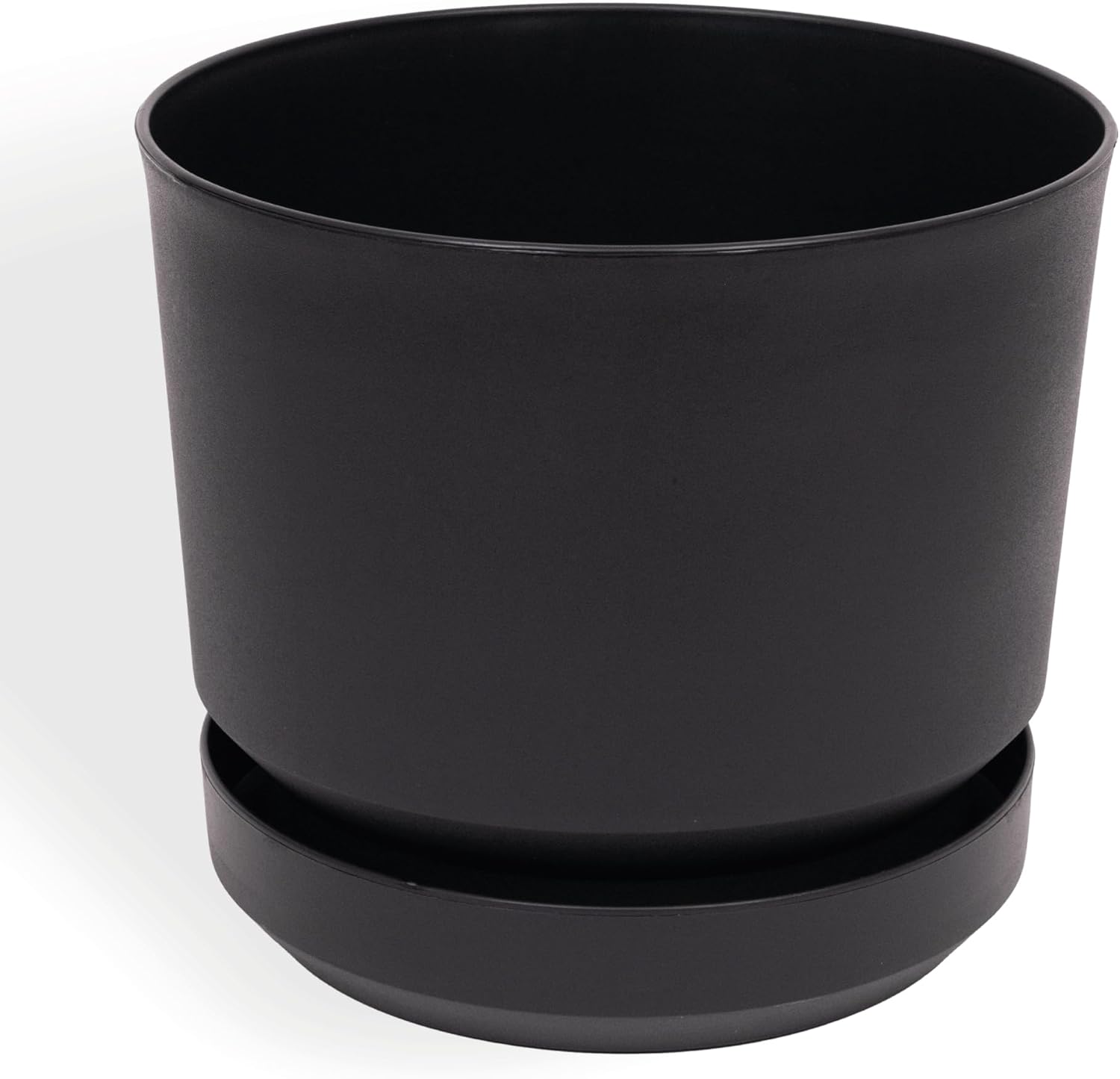 Elly Décor 14 inch Plastic Cylinder Planter Pot with Self-Watering Saucer and Drainage Hole,Lightweight & Extremely Durable, 14"x 14", Charcoal