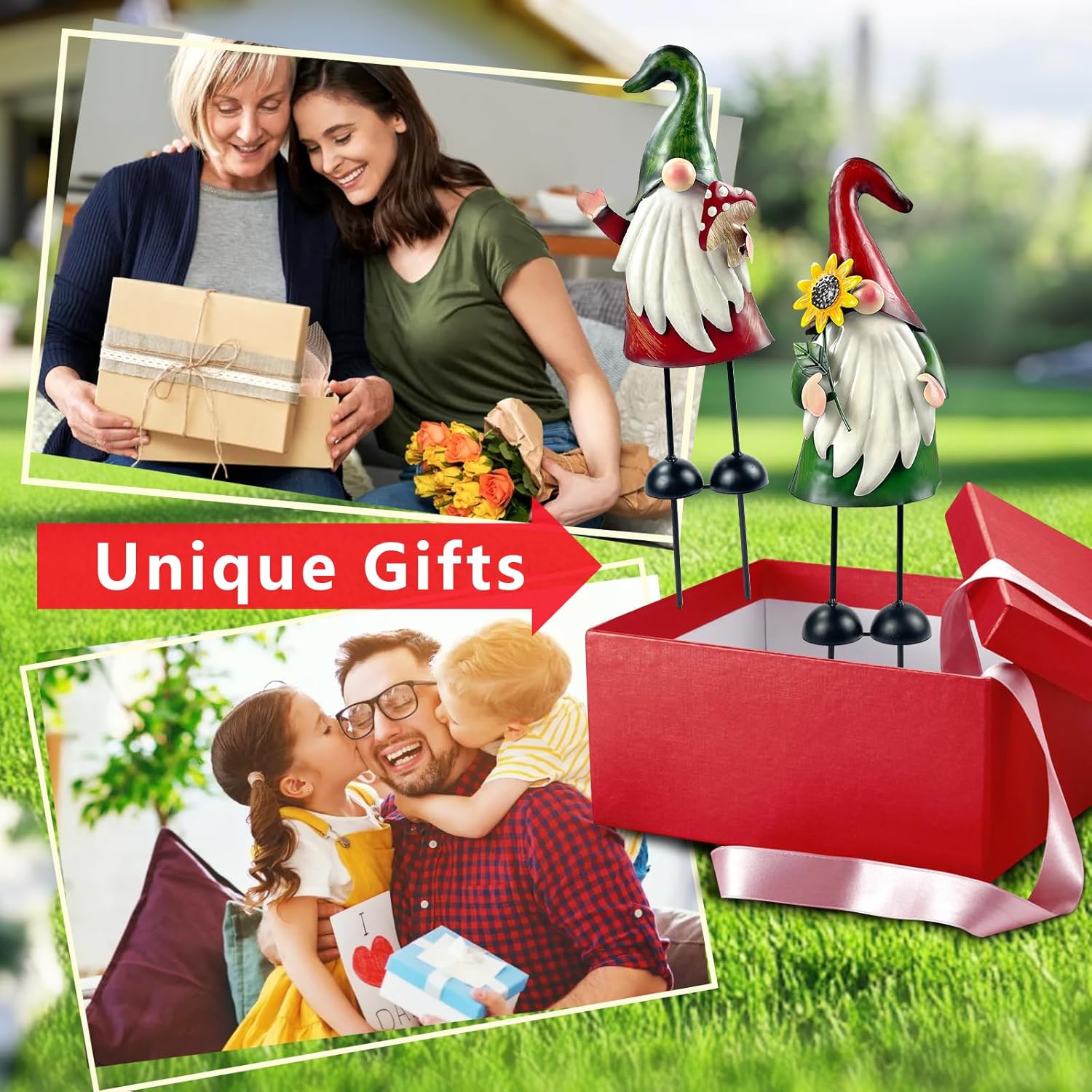 • 【Cute Gnome Garden Decor】Metal gnomes yard art with sunflower&mushroom are great for decorating your garden, add some bright colors to your favorite indoor and outdoor potted plants. Create a whimsical vibe to your garden, patio or front porch that will be a wonderful added feature to your garden decor