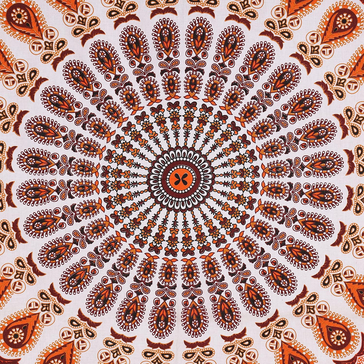 Bless International Handmade Indian hippie Bohemian Psychedelic Peacock Mandala Wall hanging College Dorm Beach Throws Table Cloth Bedding Tapestry (Orange Brown, Poster(30x40Inches)(76x101cms))