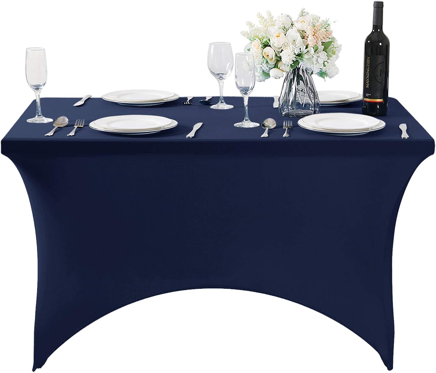 SuperO 2Pack Waterproof Spandex Table Cover for 4FT Table Universal Fitted Stretch Tablecloth for Party, Banquet, Wedding and Events-Navy