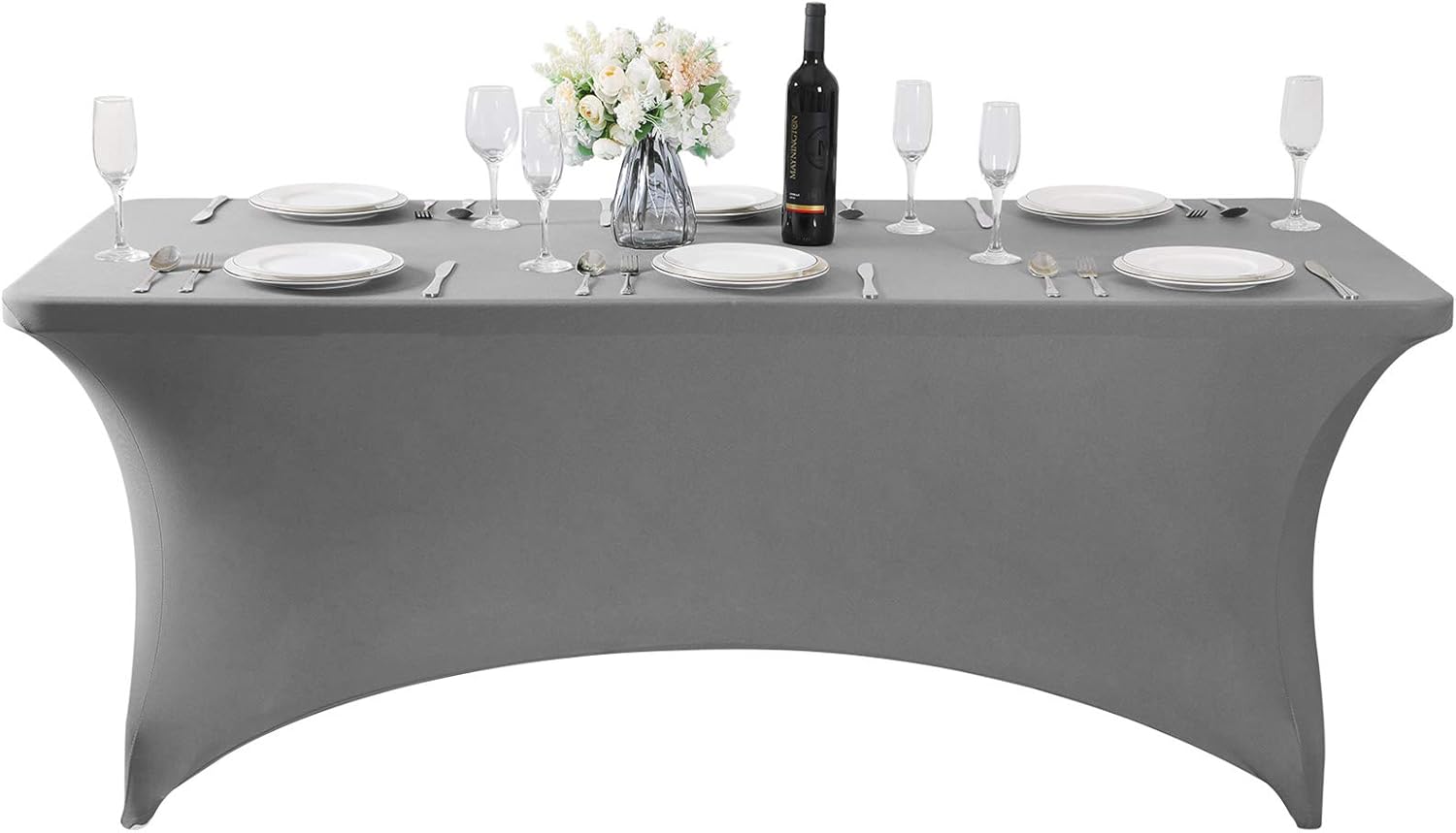 SuperO 2Pack Waterproof Spandex Table Cover for 6FT Table Universal Fitted Stretch Tablecloth for Party, Banquet, Wedding and Events-Gray