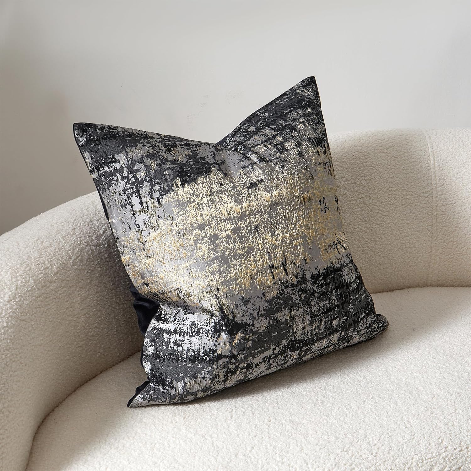 THE-TINOART Charcoal Gray & Black Pillow Cover 18x18 - Gold Embroidered Luxury Jacquard, Modern Reversible Throw Pillow Cover for Sofa/Bed, Velvet Backing