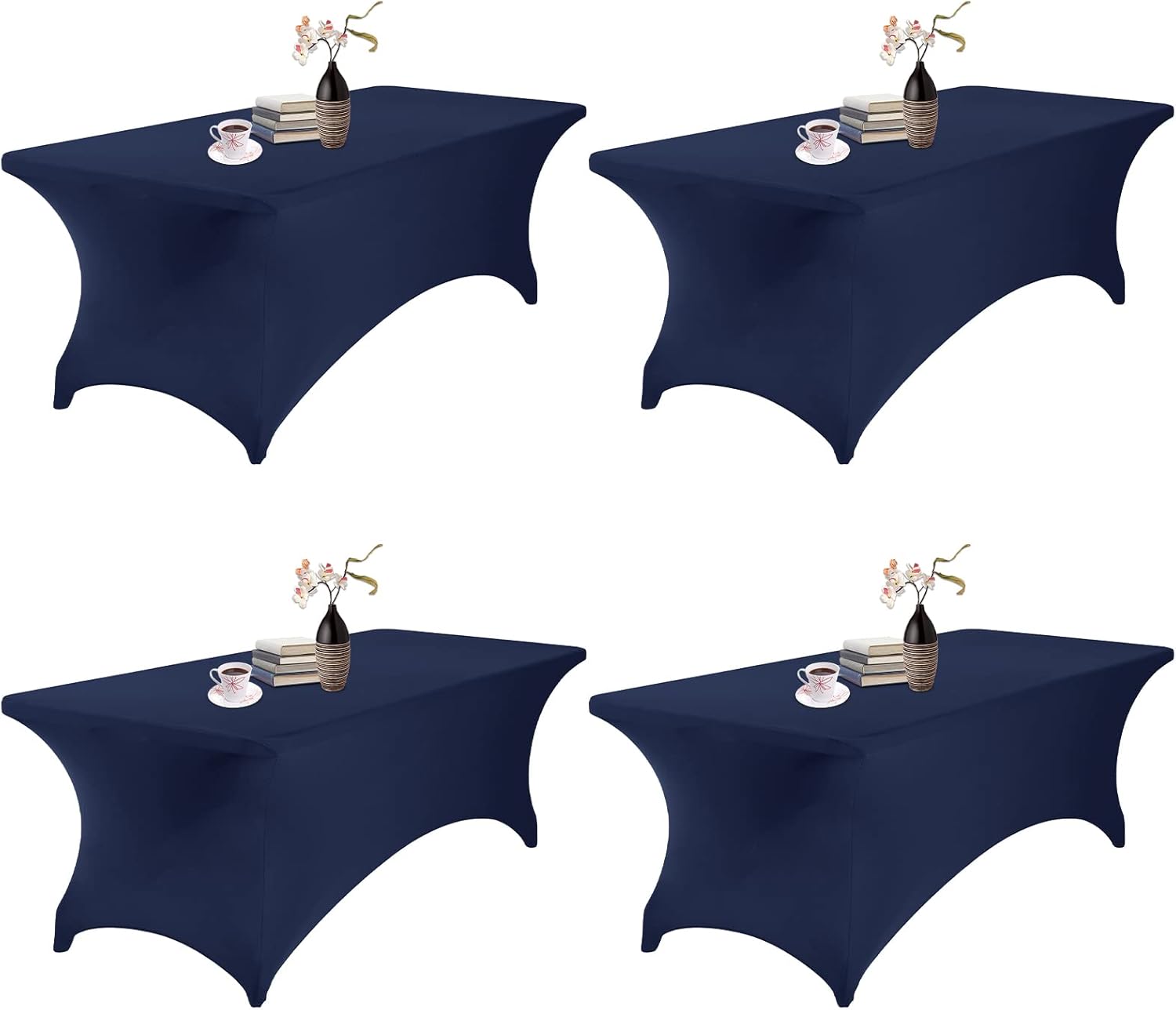 4Pack Spandex Waterproof Table Covers 8ft,Spandex 8ft Waterproof Table Cover for Party,Wedding, Banquet, and Events(Navy)