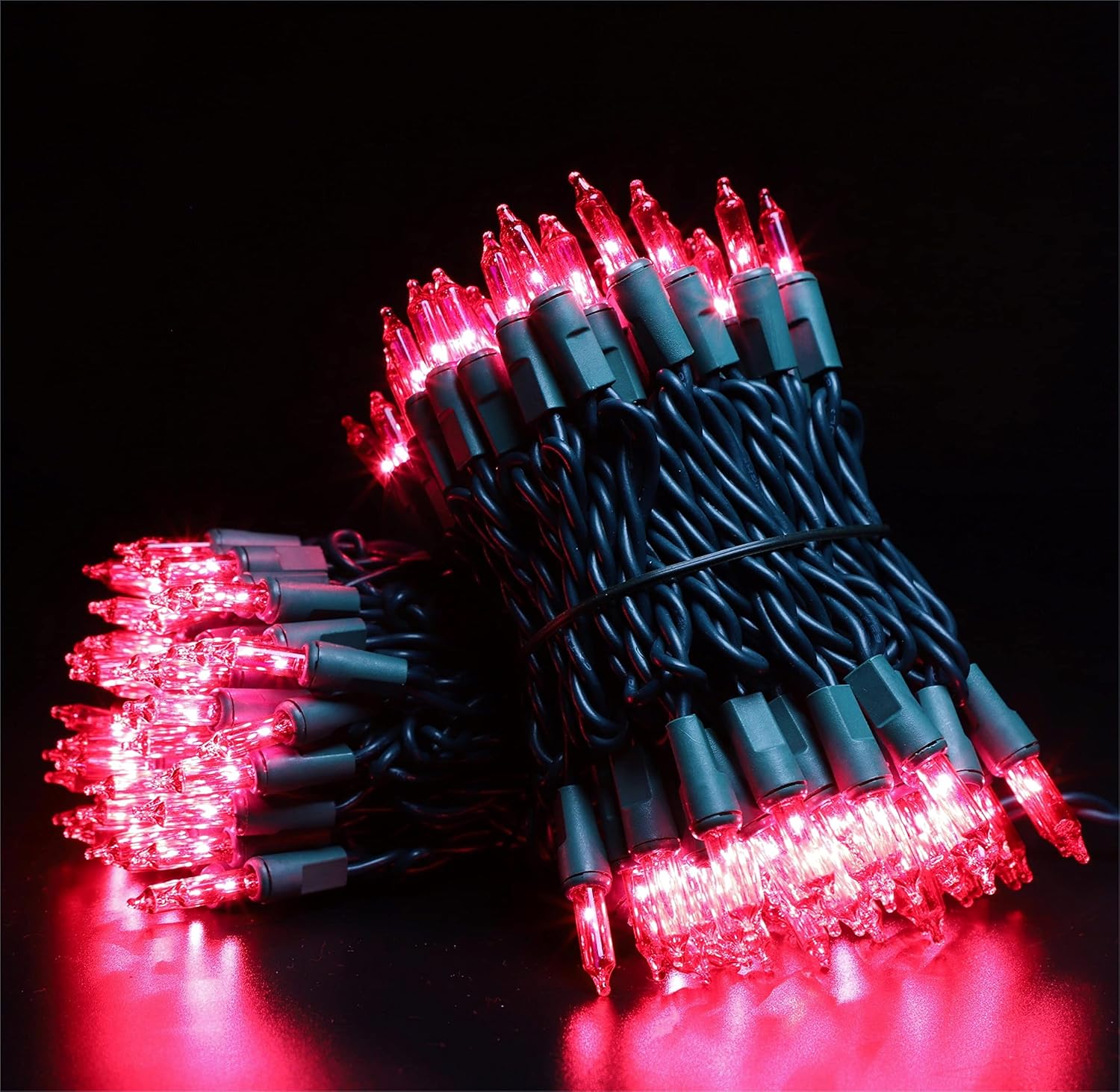 Green Wire, Pink Incandescent Bulb 300 Mini String Lights for Indoor Christmas Tree Garland Birthday Wedding Party Festival Decoration