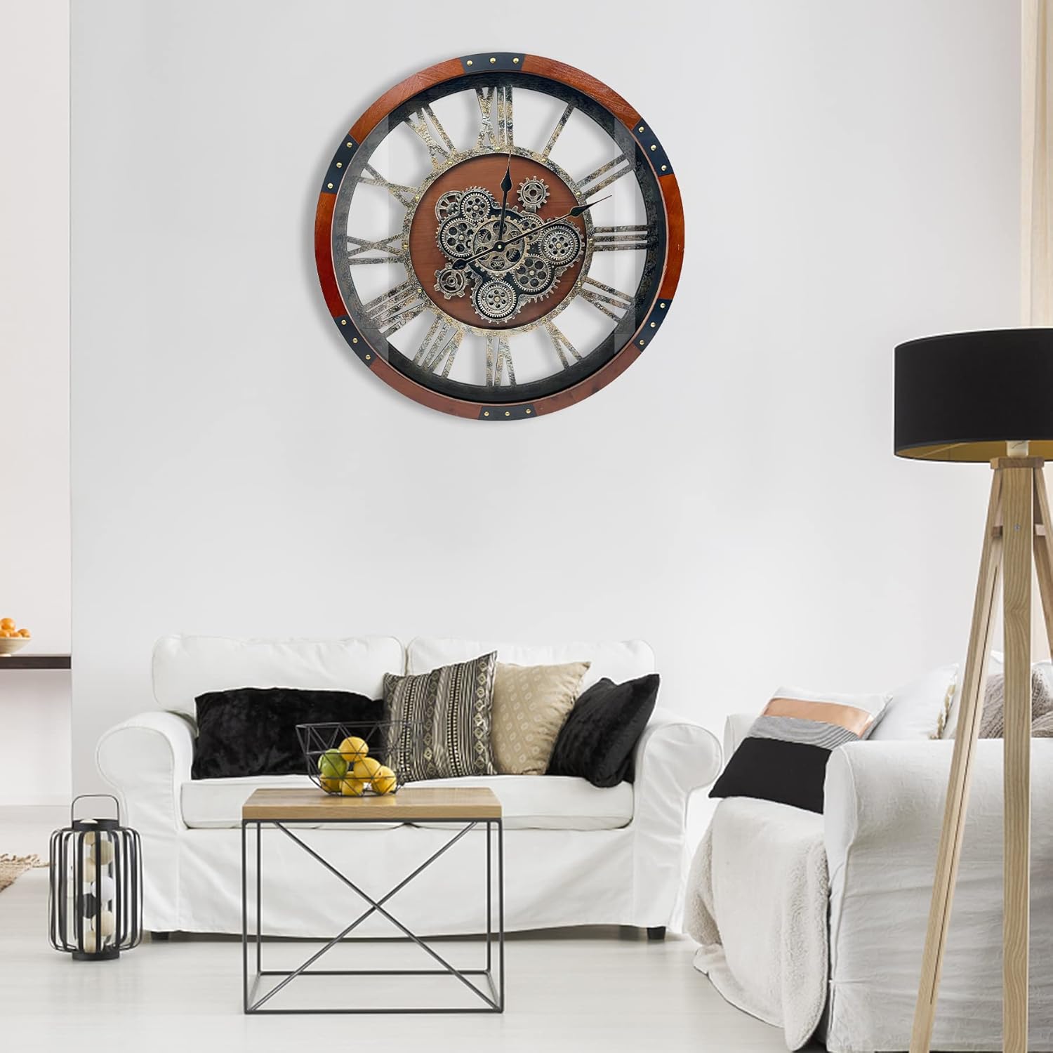 - Real Moving Gears Wall Clock: The large rustic wall clock is design with multi-real moving gears, put battery in, various gears start working, makes a subtle relaxing sound and makes a living element in the environment in where it is placed, vintage and magical, catch all eyes of visits