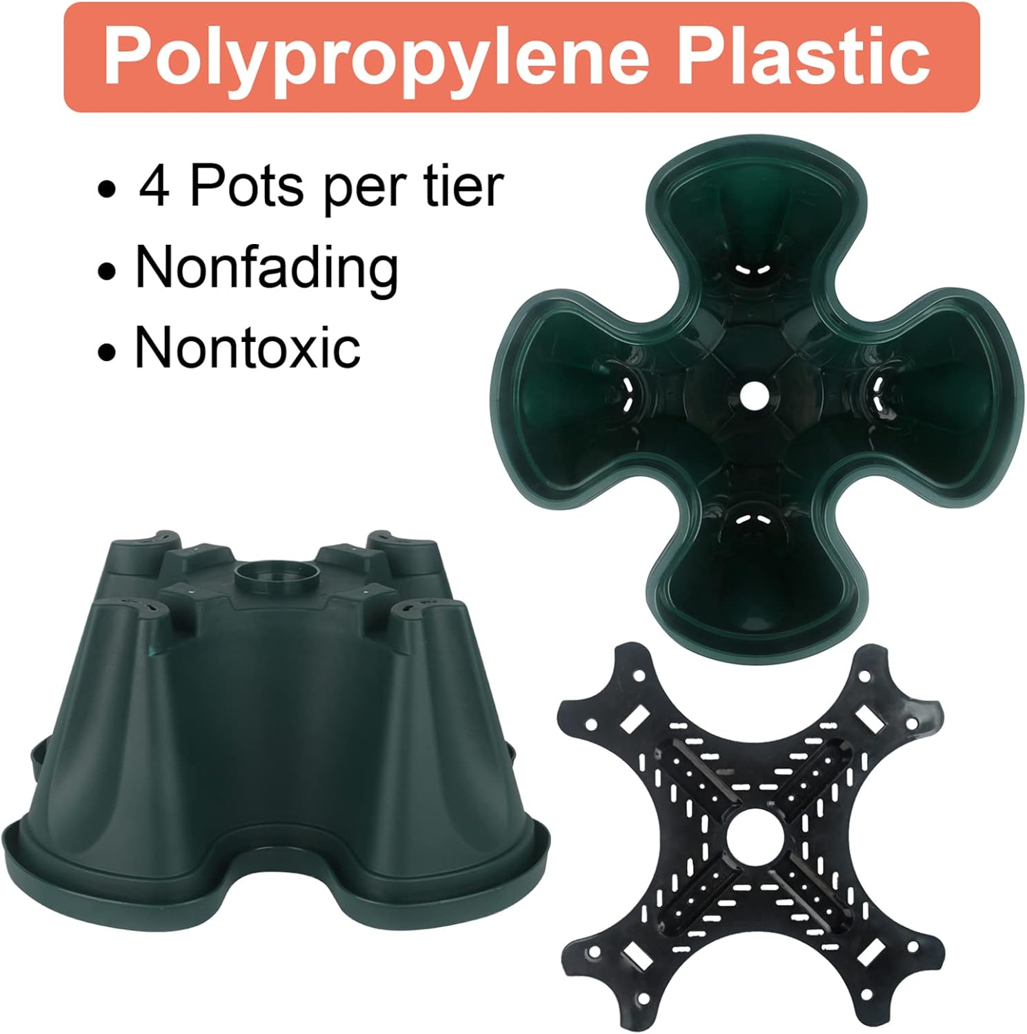 DUNCHATY Stackable Planter, Vertical Garden Planter with Wheels and Tools, Self Watering Strawberry Planter Indoor/Outdoor 4 Tier Herb Planter Pots for Growing Vegetables and Succulents,Pine Green