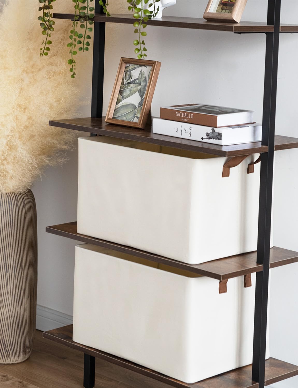 StorageWorks 45L Extra Large Fabric Storage Bins with PU Handles, Storage Baskets for Organizing, Large Laundry Basket, 2-Pack, Beige, 19" L X 13.25" W X 11" H