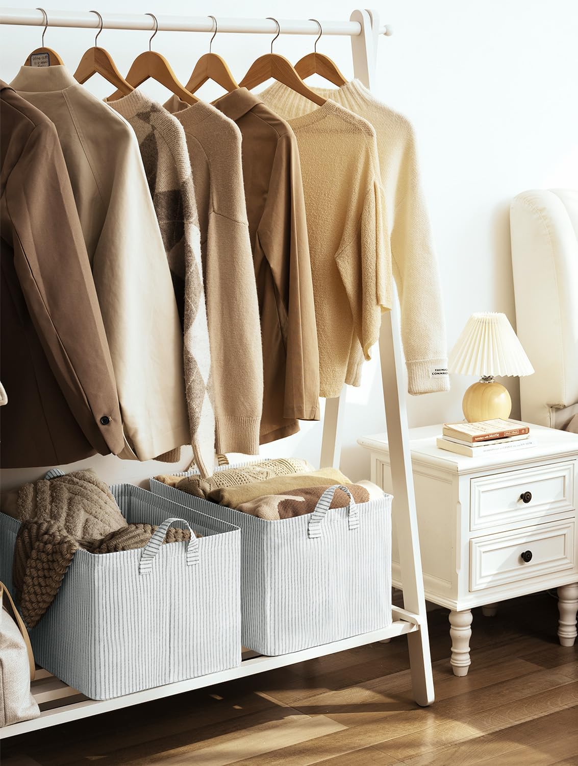 StorageWorks Storage Bins, Fabric Storage Bins for Shelves, Extra Large Storage Baskets with Metal Frame, Closet Baskets and Bins with Handles, Jumbo, Gray and White Stripes, 2-Pack
