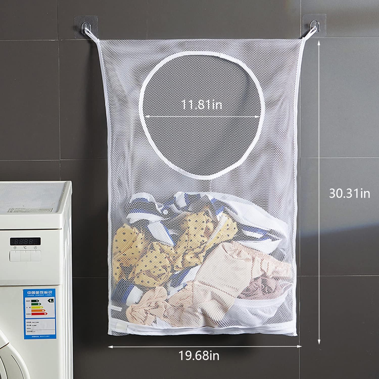 - Mesh ventilation: Mesh design makes each of your clothes or dresses can have its own blanket and space to breathe. 2 free adhesive hooks can be hung on the smooth and clean surface(like wall, tile etc) with stickers.The clothes hampers suitable for hanging in bathrooms, laundry rooms or dorms.
