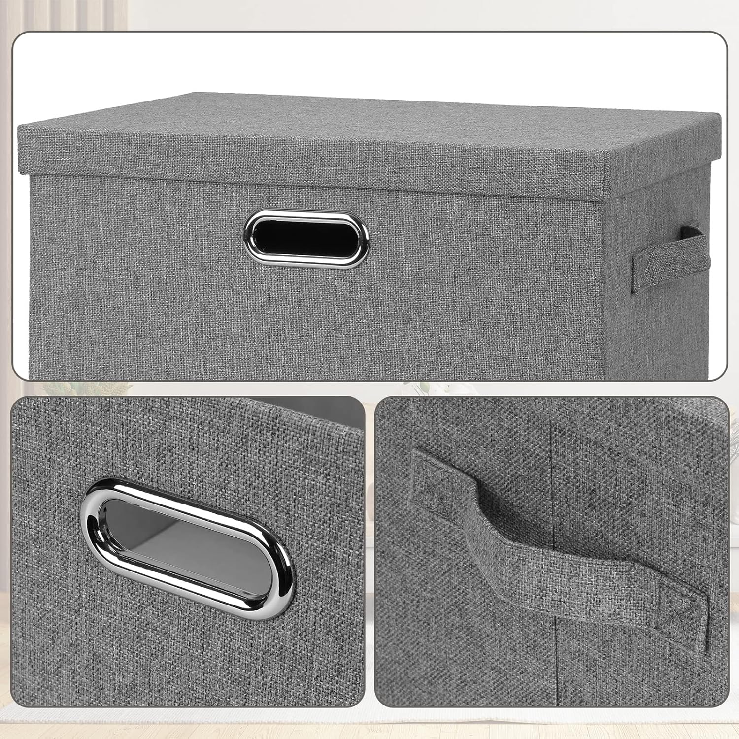 - ā [Constant Use] Covered by thick textured cloth, our large lidded storage bins prevent daily wears and tears. They can keep dust and bugs out also, avoiding dirt and musty smell. You can use these decorative storage boxes with lids everyday or for long term storage.