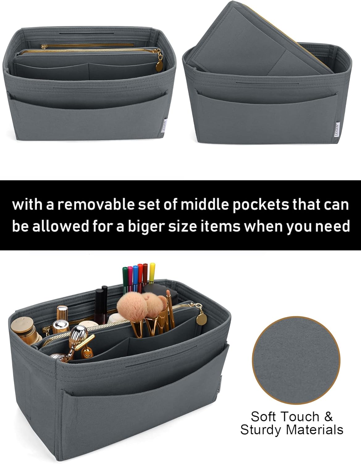 LEXSION Felt Purse Bag Organizer Insert with zipper Bag Tote Shaper Fit Speedy Neverful PM MM