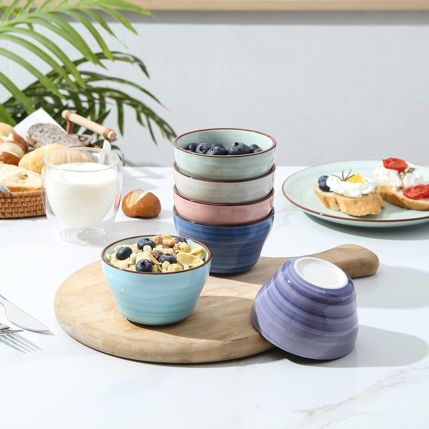 - VERSATILE - These 8oz bowls are perfect for a small helper of dessert, soup, fruit, snack, and ice cream, even your favorite condiments and dips like salsa, ranch, and more. Great useful for portion control and sizing for eating healthy. Whether you're enjoying a morning breakfast or a sweet evening treat, you'll love this set of 6 dessert bowls.