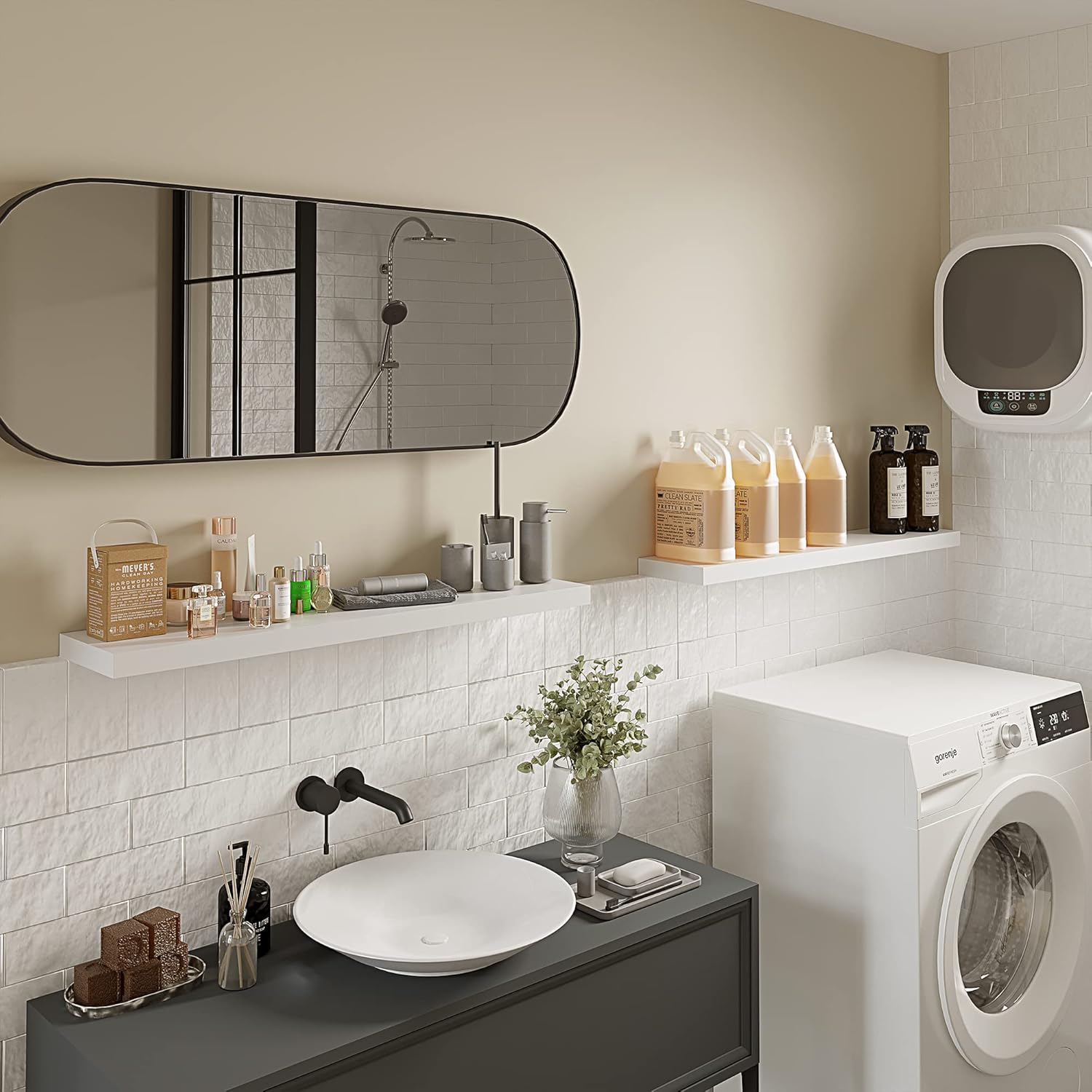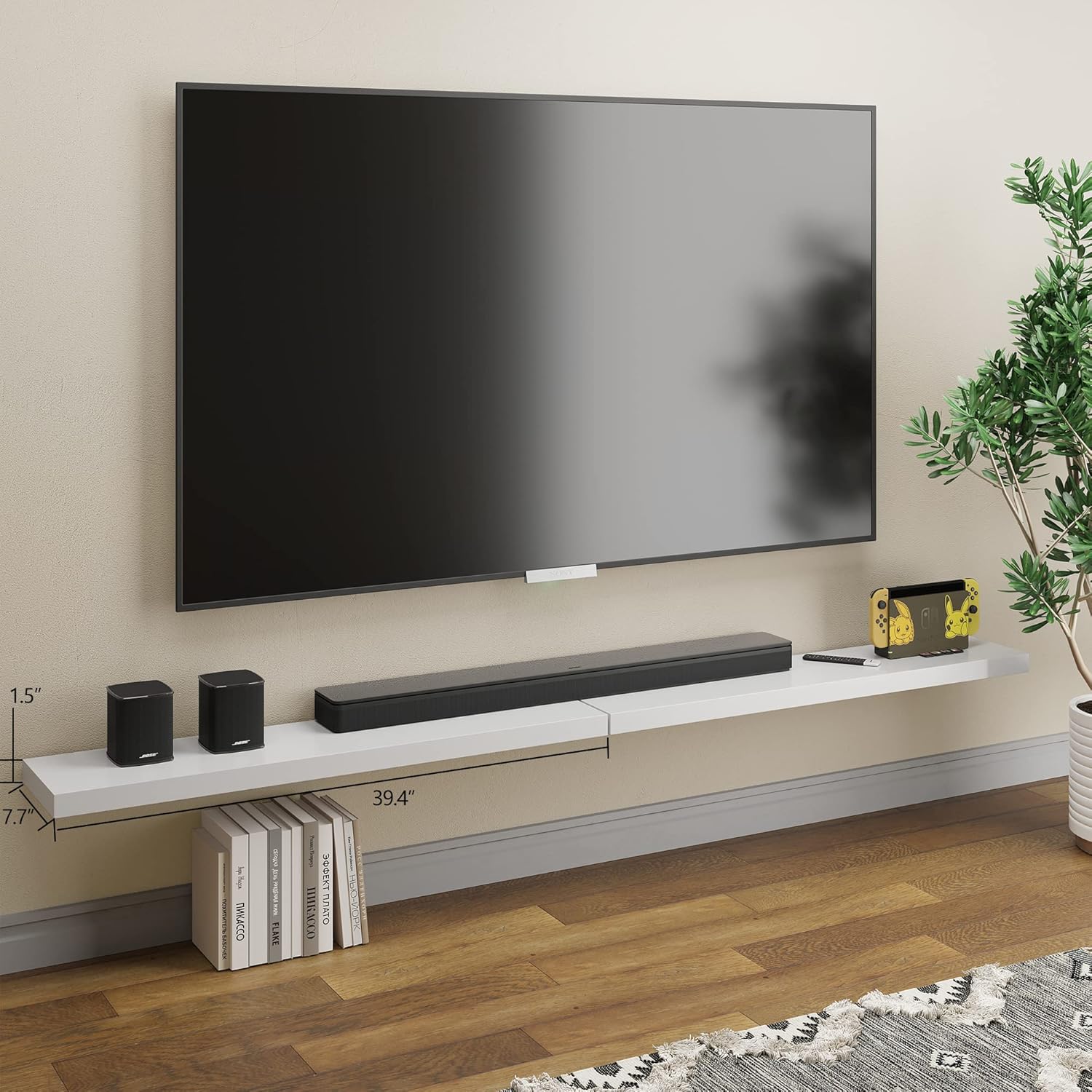 - 40 INCHES FREE UP SPACE: The Bameos White Wall Shelf will maximize space without taking up any square feet - each board measures 39.4β L x 7.7β W x 1.5β H; Reduce clutter and highlight decor in a compact space - giving the illusion of more space in your studio apartment, dorm room or small living area and so on