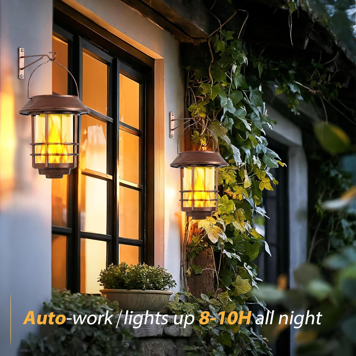 - WEATHER RESISTANCE:Solar hanging lights outdoor waterproof with IP65 waterproof and durable. This solar hanging lanterns outdoor With Flickering Flame was built to withstand all kinds of weather all round year.