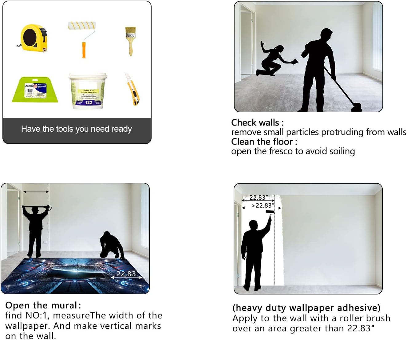 - This mural is It's not Peel and Stick . Additional Purchase required ( thick wallpaper adhesive ) please Check if is the product you need . thanks.