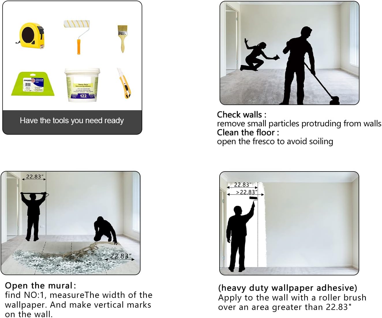 - This mural is It's not Peel and Stick . Additional Purchase required ( thick wallpaper adhesive ) please Check if is the product you need . thanks.