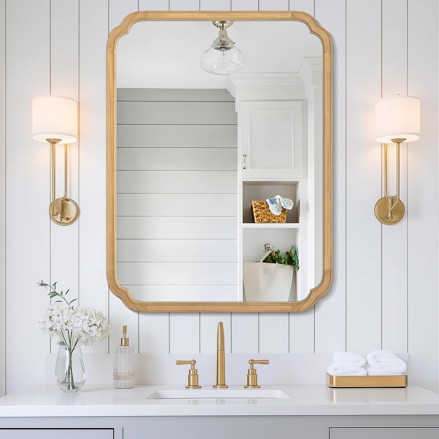 WallBeyond 30" x 40" Rounded Corner Arch Wall Mirror with Wood Frame for Entryway, Living Room or Bedroom Home Decor - Light Woodgrain [30 x 40 inches, Natural Color]