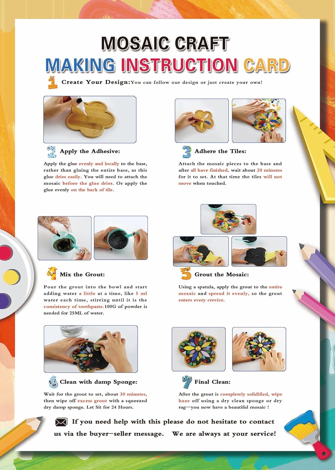 - Multi-application -- All the materials are frost-resistant and waterproof so your finished mosaic art can do more than just bring color to your garden serve as a drink coaster and decorate any room in your home