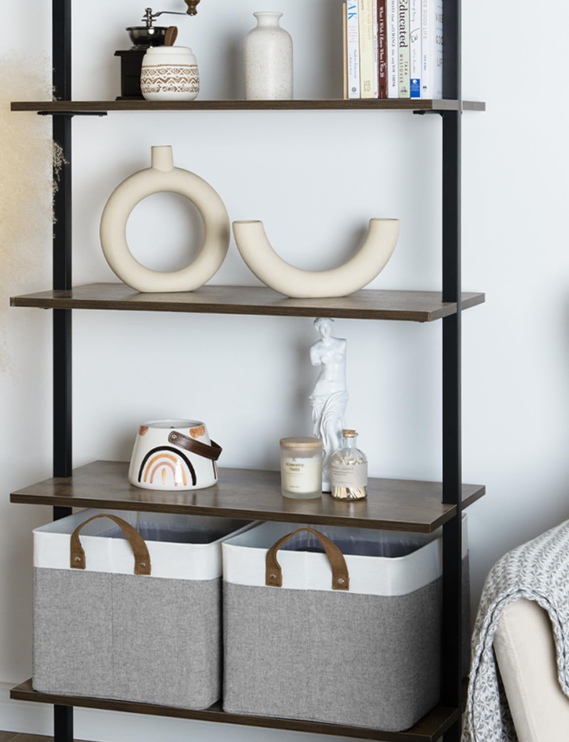 StorageWorks Storage Bins, Fabric Storage Bins for Shelves, Large Storage Baskets with Metal Frame, Closet Baskets and Bins with Handles, Gray and White, 2-Pack