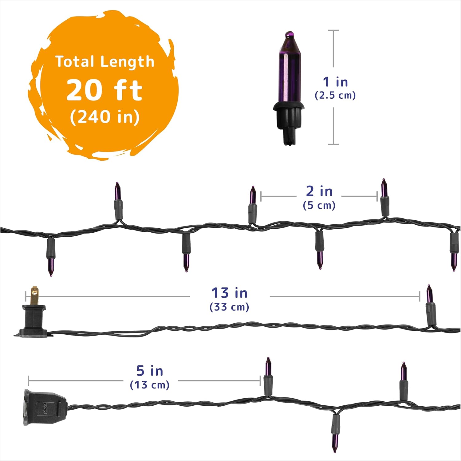 - Complete Lighting Set: Includes 100 purple string lights on 20 ft black wire with 2 flasher bulbs for twinkle effect, 2 extra bulbs, and 2 replacement fuses; perfect for festive Halloween displays