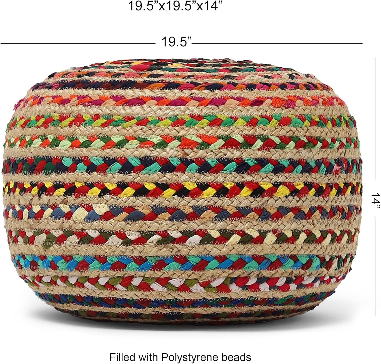 REDEARTH Round Pouf Ottoman - Braided Boho Poof Home Décor Pouffe Accent Sitting Circular Foot Rest for Living Room, Bedroom, Nursery, Kidsroom, Lounge; Jute and Cotton (19.5"x19.5"x14"; Multi)