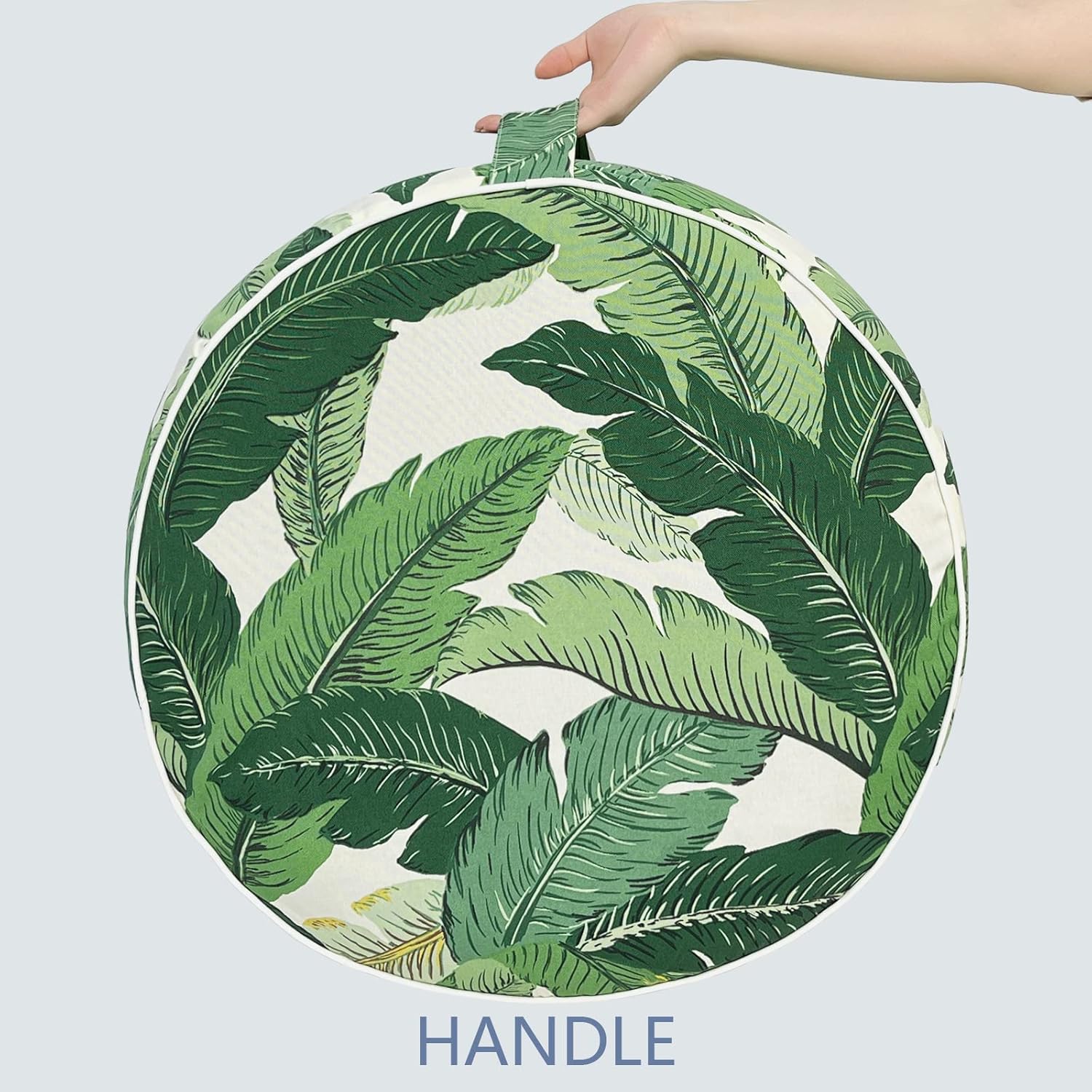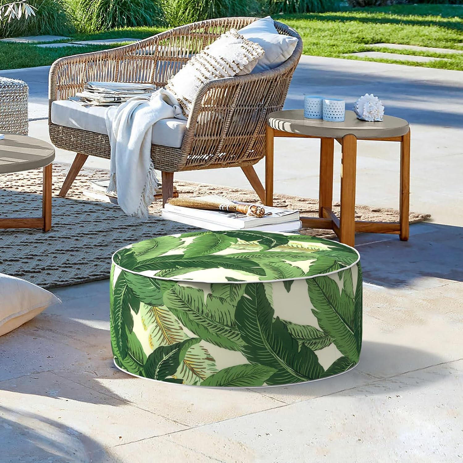 LVTXIII Outdoor/Indoor Round Inflatable Ottoman, All Weather Patio Footstool, Portable Footrest Seat for Patio Garden, Camping or Home, 21"x21"x9", Swaying Palms Green