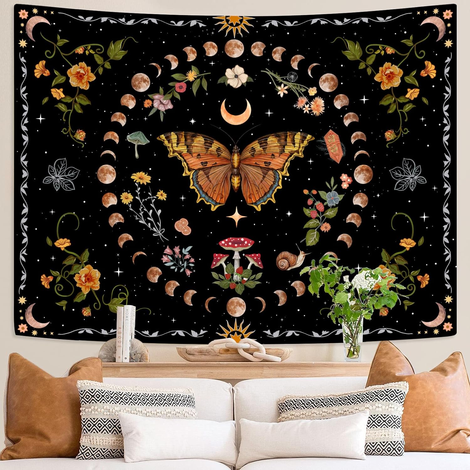 - 🎄【Service】: If you have any problem with thebutterfly moon flower tapestry, please customer service immediately, we will solve it for you. These aesthetic tapestries have three sizes, 48'' wide × 36'' high, 60'' wide × 44'' high, 80'' wide × 60'' high.