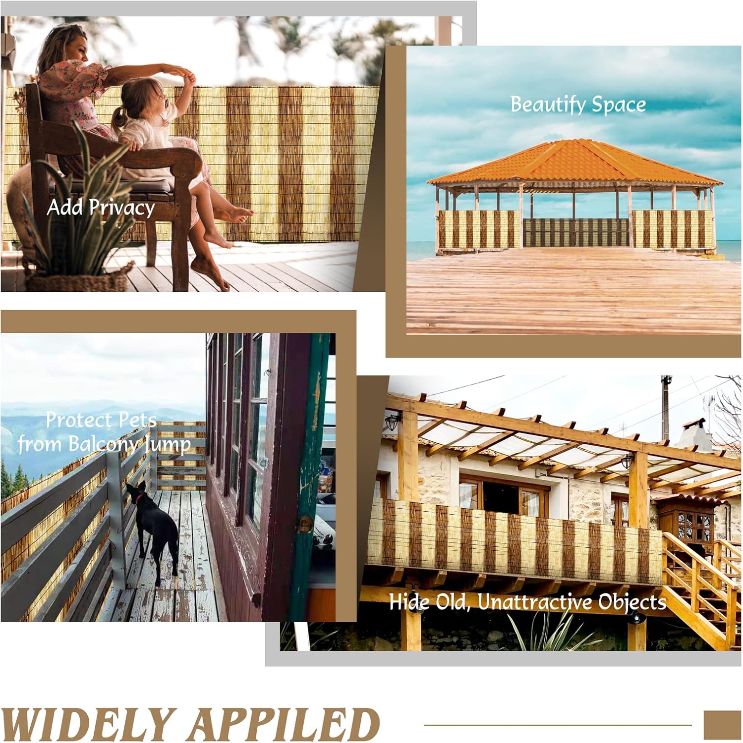 - 【1-PACK MULTI-FUNCTIONAL REED FENCING】- This set has 1 pack of reed. Use them to hide unattractive objects or old fence, add more privacy, provide shade to your balcony/patio, stop pets from jumping from balcony, adorn swimming pool, giving a rustic and natural look to your space