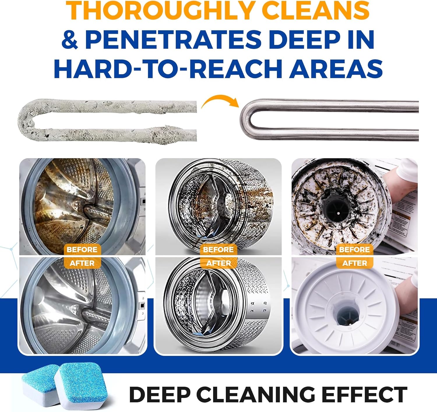 - Easy to Use: Simply drop one tablet into the drum, run a hot cycle without any laundry, and let the tablet dissolve to release a cleansing foam that reaches every corner of your machine.