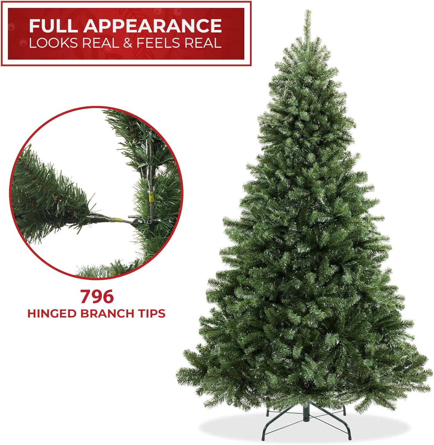 - Built to last: Constructed with flame-retardant, non-allergenic PVC, the branches and needles are designed for safety and longevity. Features hundreds of individually crafted, pre-attached branch tips with sturdy metal hinges for easy shaping and reliable use year after year.