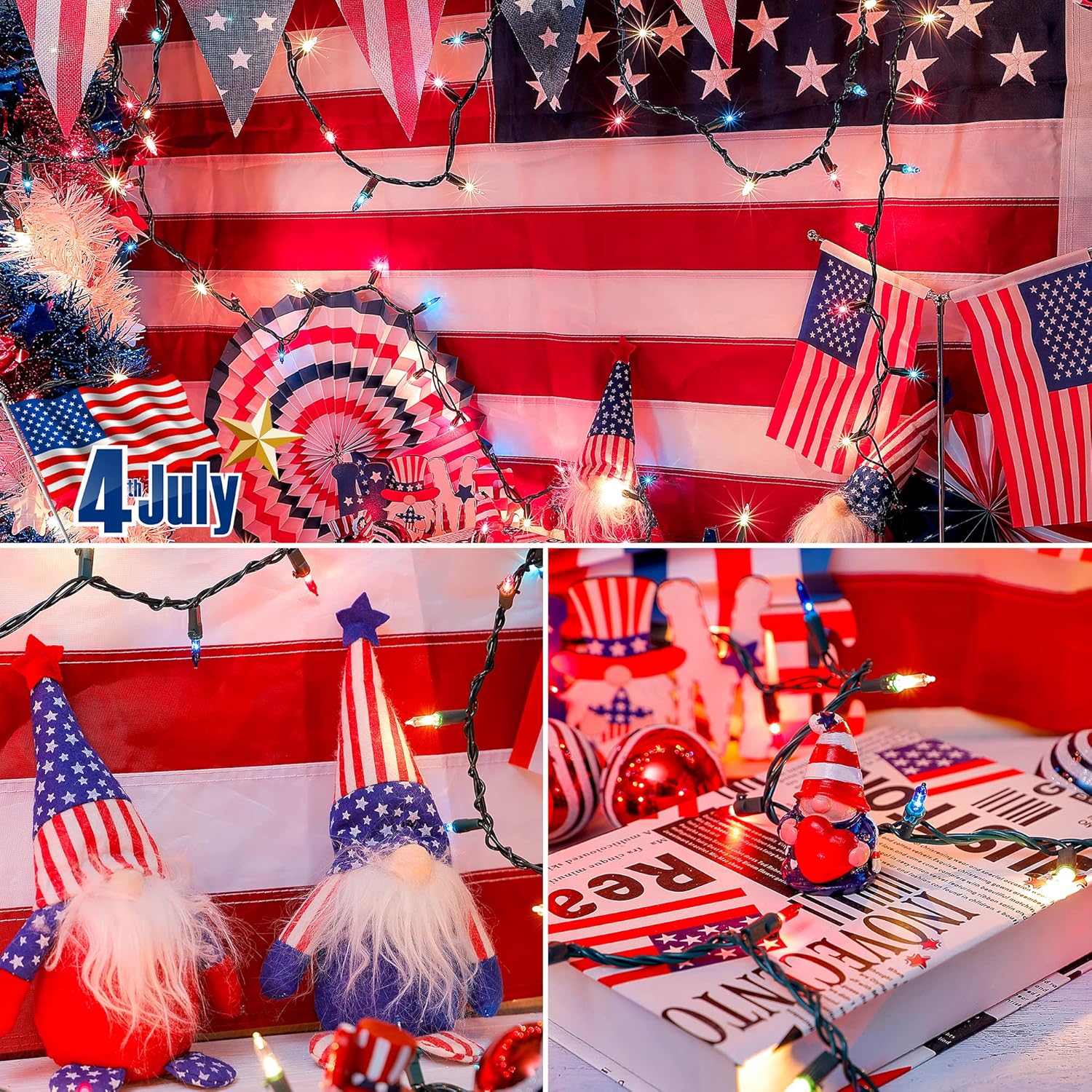 - Independent Lighting:Each bulb of red white and blue mini lights is independently illuminated,the others will keep work even one bulb goes out.Great for the National Day,Patriotic Day,Memorial Day, Labor Day,President Day,Military Graduation,International Conferences,4th of July,Veterans Day,American Party,Christmas,New Year decoration.