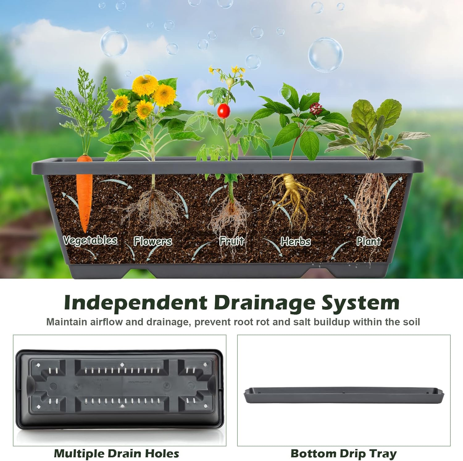 - 🍀【Removable Bottom for Drainage】 Thanks to a scientific drainage system, each flower bin contains ample drainage holes. Just take off their bottoms, excess water will naturally outflow under the guidance of gravity.