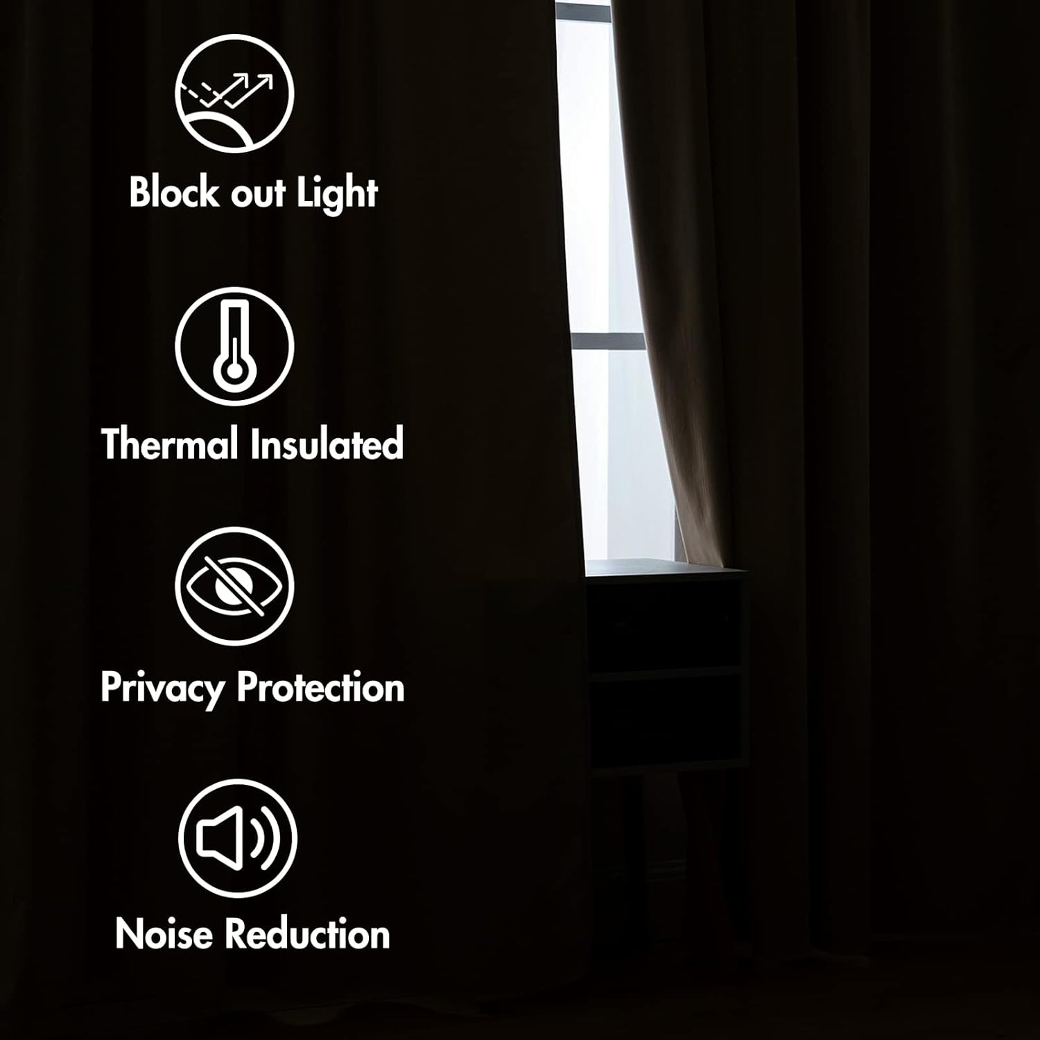 - FUNCTION: Craft from thick velvet, curtains can block 80% of the sunlight. Also, these drapes can keep heat down in summer or keep cold out in winter to achieve smart energy saving. And these panels can provide privacy, reduce noise, which help to create a quiet sleeping environment.