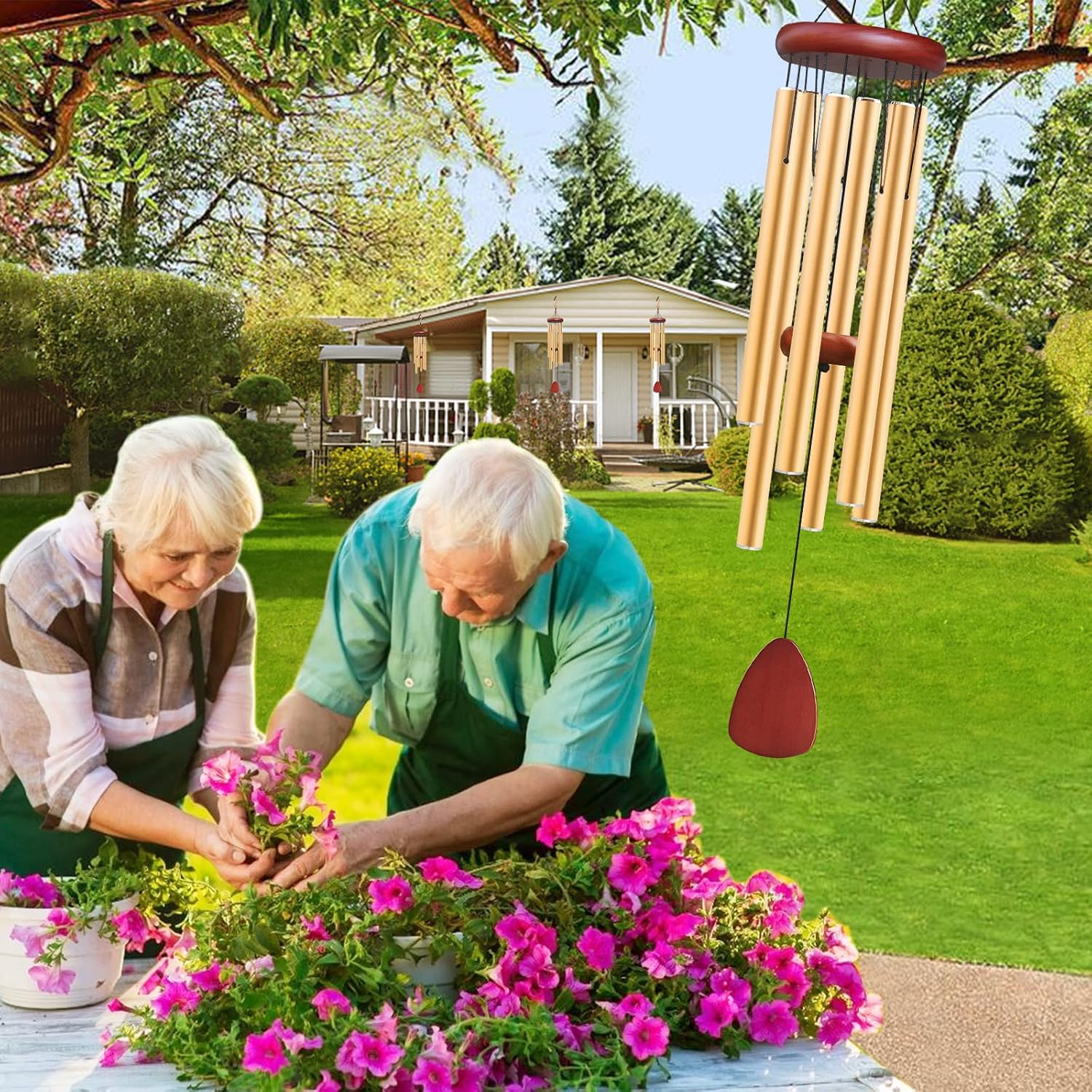 Large Aluminium Wind Chimes Outside, Soothing Melodic Memorial Sympathy Wind Chime, Suitable Outdoor Garden Decor, Gift for Mom Women Neighbors (Gold Wind Chimes-36)