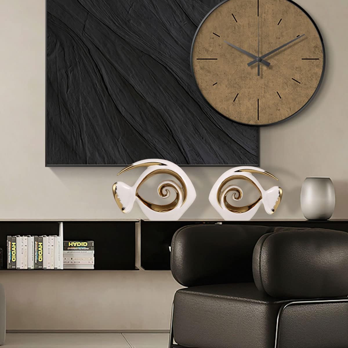 White Gold Ceramic Fish Figurines - Coastal Home Decor, Modern Ocean Centerpieces for Living Room, Dining Area, Bathroom, Office, Coffee Table, Beach House, Nautical, Seaside, Entrance, Shelf Display