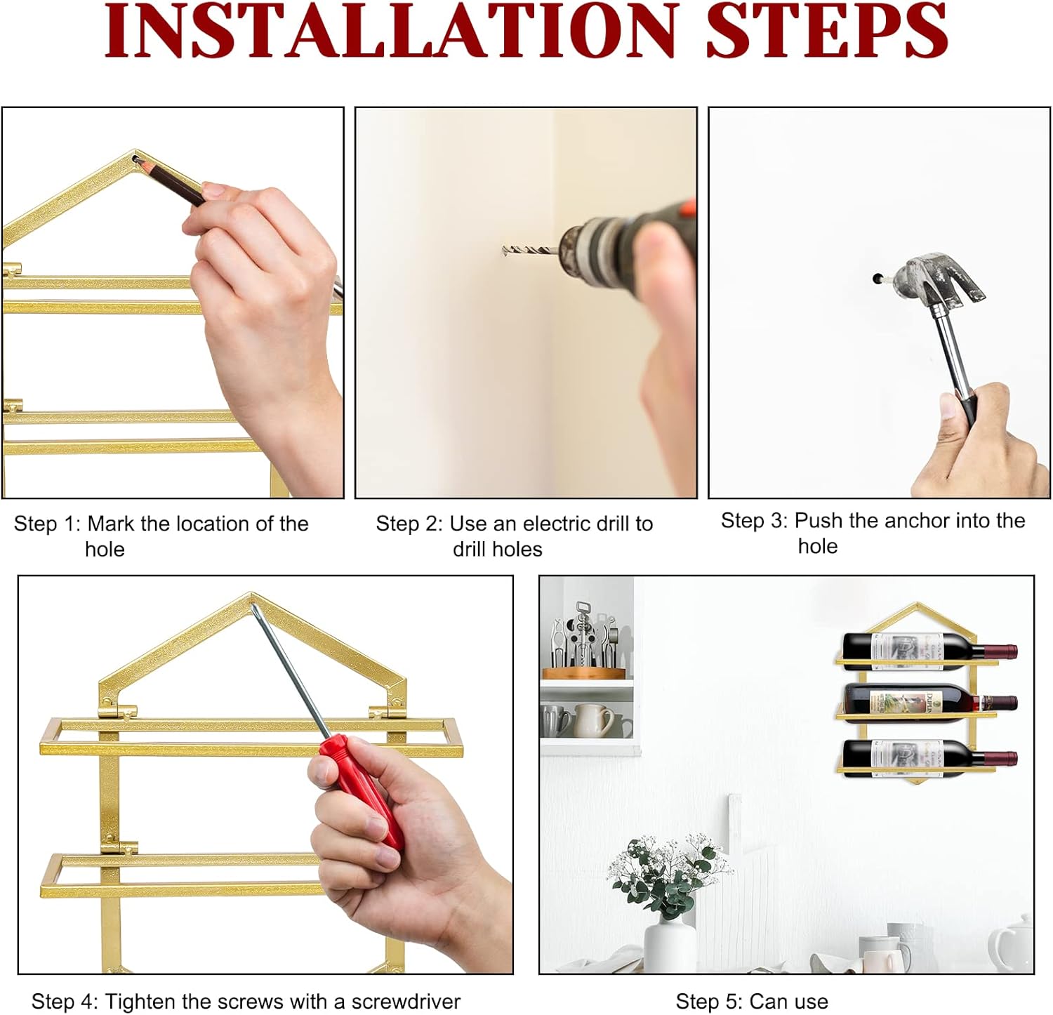 - ăEasy to InstallăEnjoy quick and easy installation of your wall wine bottle and glass holder with the easy to use mounting hardware included, which can decorate any wall space and has an important decorative effect.
