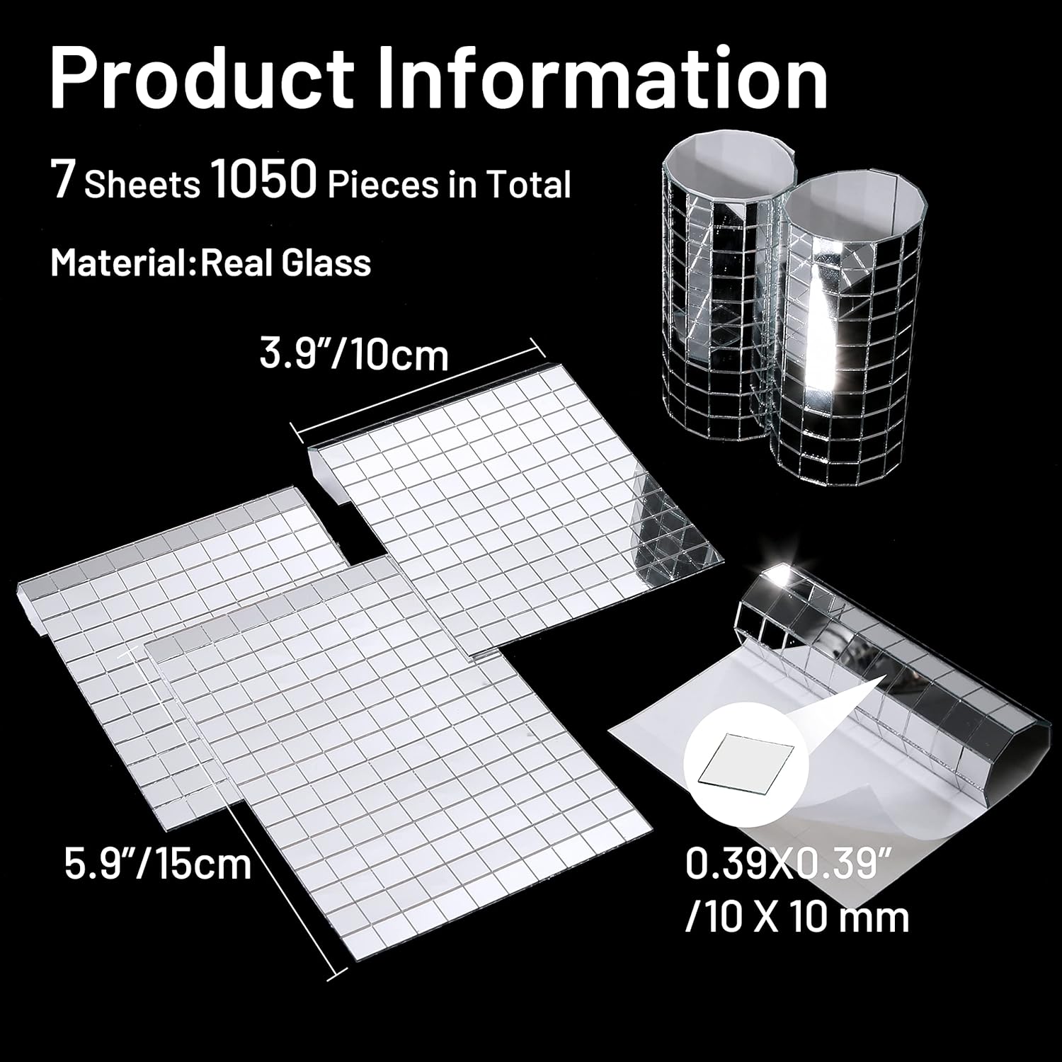 - 1050 PCS Disco Stickers: Come with 7 sheets mirror tile sheets, each sheet contains 150 pieces mosaic tiles, you will get 1050 pieces of mosaic tiles in total. DIY as you like, bring more creative options to your crafts