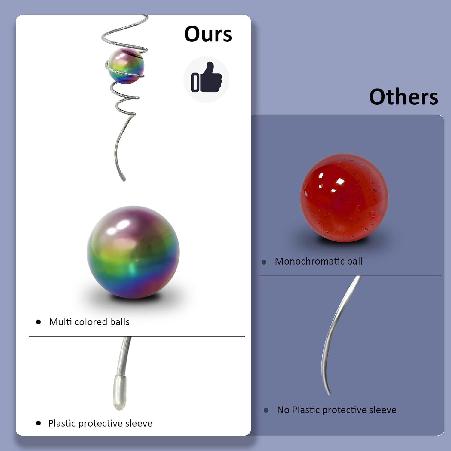 - 【High Quality】11inch height spiral tail made of #304 stainless steel wire,the 2inch colored ball made of pure solid color glass material,have good weather resistant,no fading under sunshine.Better quality than iron material with nickle plating and painting color glass ball in the market.